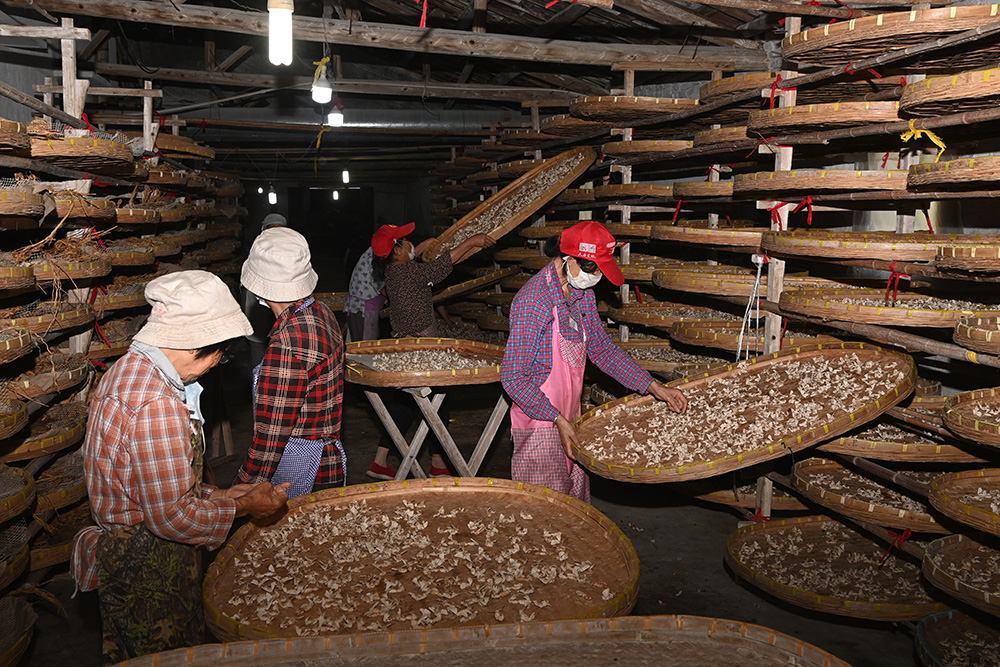 14 繭站工人正在把過水后的繭子烘干,打包后會打包發(fā)往絲廠繅絲。