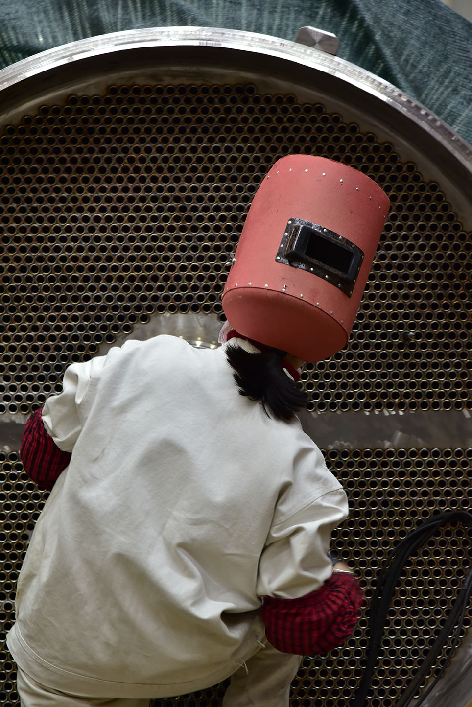 在作品創(chuàng)作中我試圖既保留美國著名攝影家海因拍攝工業(yè)的關(guān)注情懷,也借鑒美國著名攝影家尤金·阿杰的紀實攝影的視覺風格,緊緊圍繞寧波煉化工業(yè)的發(fā)展足跡,予以客觀真實地用心記錄,試圖用影像捕捉努力為實現(xiàn)“中國夢”的一線工人,使之成為時代與歷史的永恒記憶。