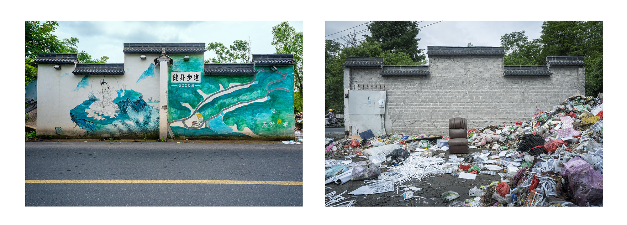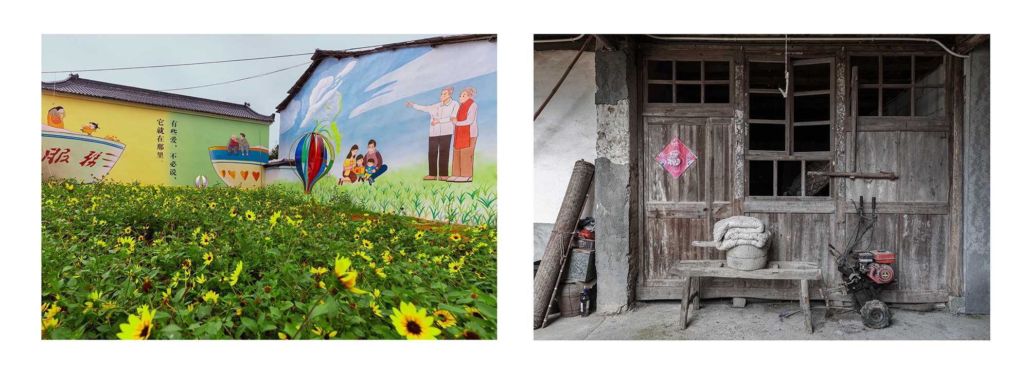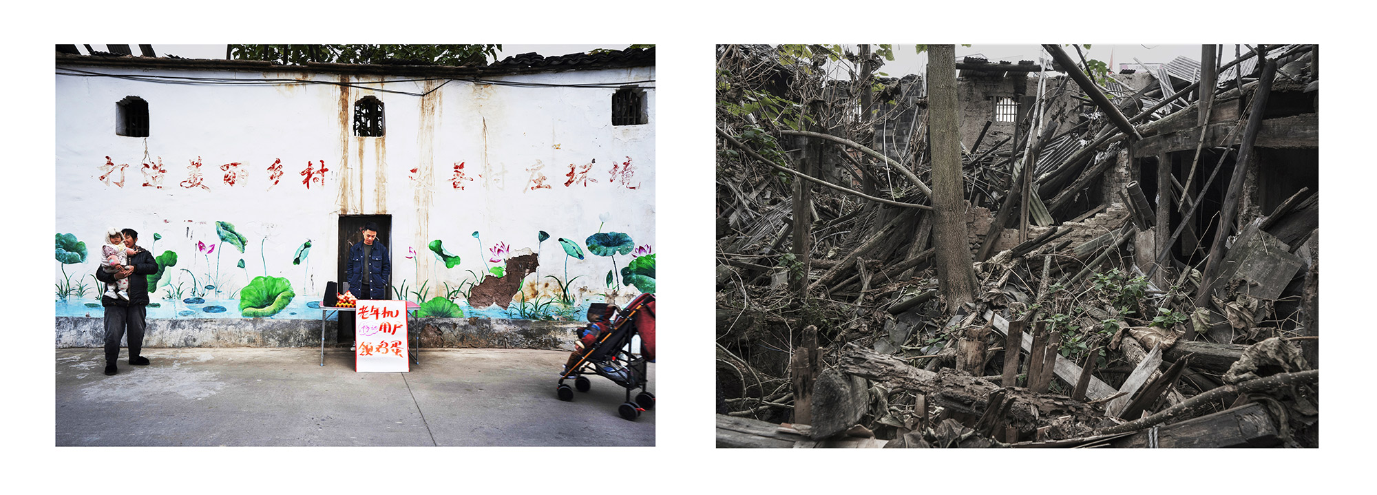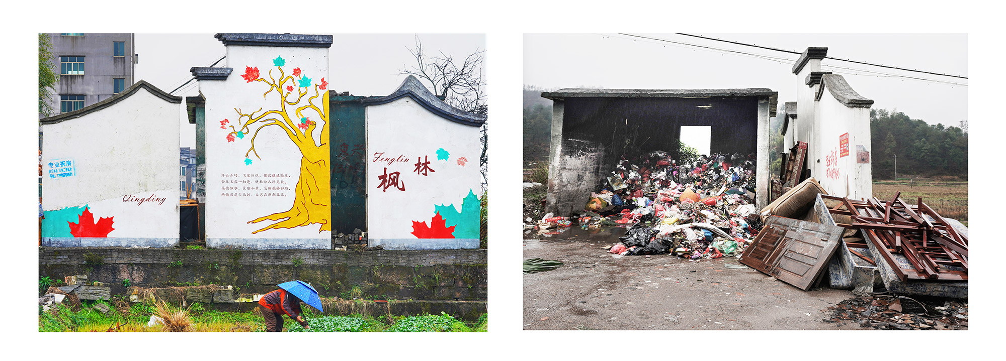 作品介紹: 隨著社會主義新農(nóng)村的建設(shè),每個(gè)鄉(xiāng)村都變得干凈整潔。潔白的墻面,美麗的墻畫,讓人耳目一新,儼然一副詩意江南畫卷。隨著走的村子多了,越來越發(fā)現(xiàn)一個(gè)奇怪的現(xiàn)象,越是漂亮的房子越是沒有墻畫,越是簡陋的房子墻畫越精彩。如果再往前走一點(diǎn),走到墻的另一面,會瞬間讓人大跌眼鏡,令人看后心酸的黑暗土坯房住著孤獨(dú)的老人,遍地?cái)啾跉堅(jiān),還有散發(fā)著臭氣的垃圾場。美麗鄉(xiāng)村的建設(shè)竟然還存在著種種假象。對于這些墻面美化工程來說,似乎更是一種形式主義的“面子工程”。對于農(nóng)村人來說想象中的美麗新農(nóng)村形象,也絕對不是這樣的面子形象。畫一面墻就能建成新農(nóng)村,這樣的新農(nóng)村建設(shè)豈不成了毫無意義的“空中樓閣”,又能給農(nóng)村老百姓帶來什么?“美麗的墻”似乎在百姓的心中堵得慌。