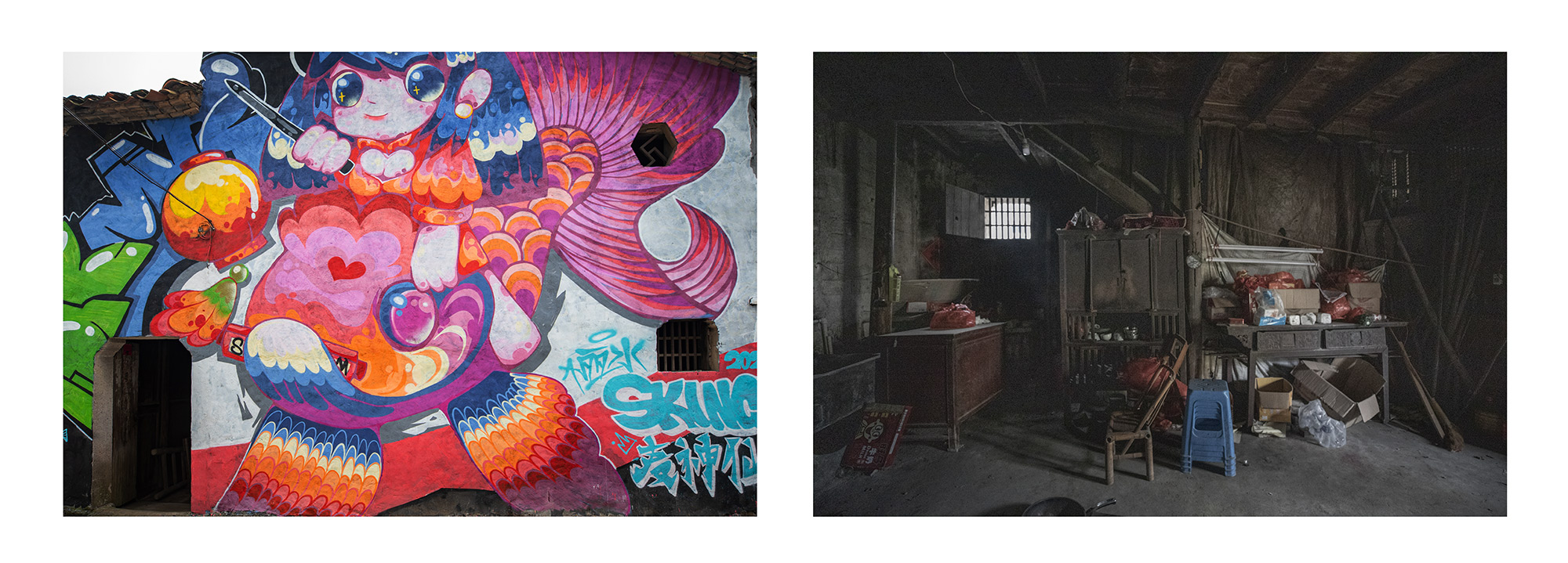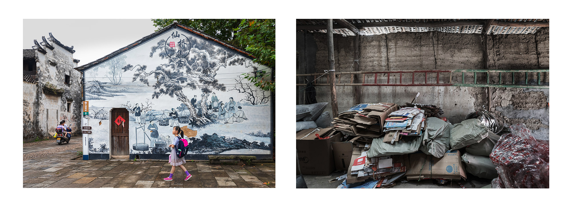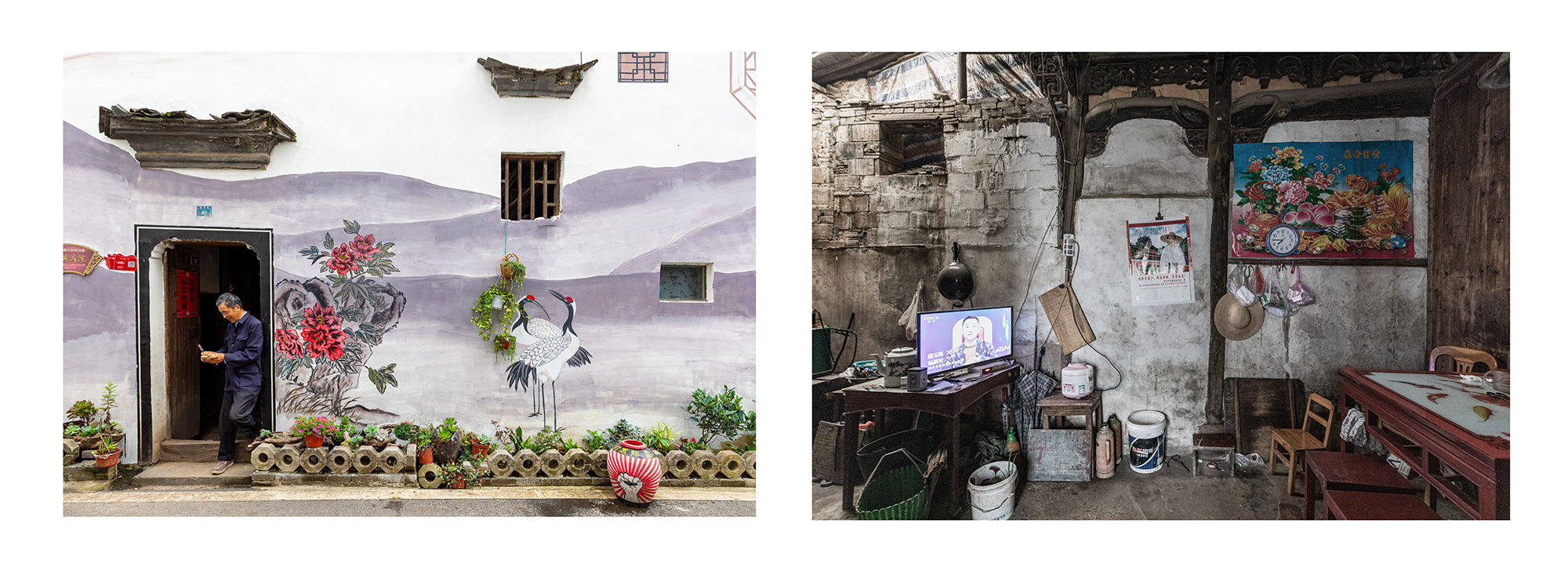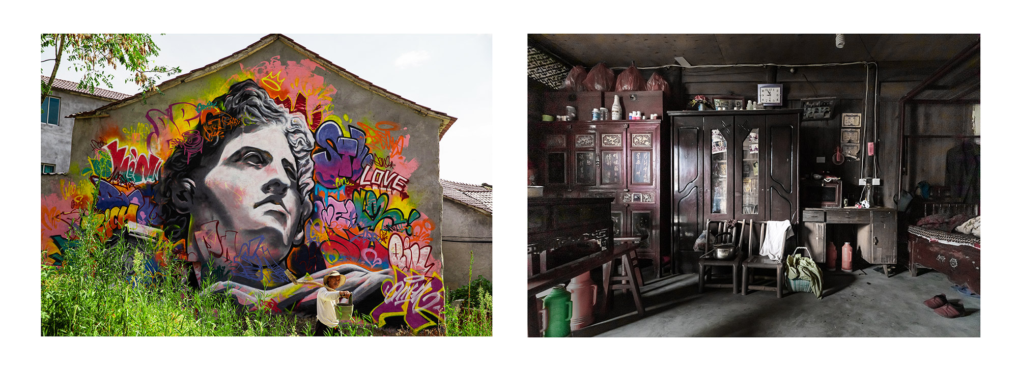 作品介紹: 隨著社會主義新農(nóng)村的建設(shè),每個(gè)鄉(xiāng)村都變得干凈整潔。潔白的墻面,美麗的墻畫,讓人耳目一新,儼然一副詩意江南畫卷。隨著走的村子多了,越來越發(fā)現(xiàn)一個(gè)奇怪的現(xiàn)象,越是漂亮的房子越是沒有墻畫,越是簡陋的房子墻畫越精彩。如果再往前走一點(diǎn),走到墻的另一面,會瞬間讓人大跌眼鏡,令人看后心酸的黑暗土坯房住著孤獨(dú)的老人,遍地?cái)啾跉堅(jiān),還有散發(fā)著臭氣的垃圾場。美麗鄉(xiāng)村的建設(shè)竟然還存在著種種假象。對于這些墻面美化工程來說,似乎更是一種形式主義的“面子工程”。對于農(nóng)村人來說想象中的美麗新農(nóng)村形象,也絕對不是這樣的面子形象。畫一面墻就能建成新農(nóng)村,這樣的新農(nóng)村建設(shè)豈不成了毫無意義的“空中樓閣”,又能給農(nóng)村老百姓帶來什么?“美麗的墻”似乎在百姓的心中堵得慌。