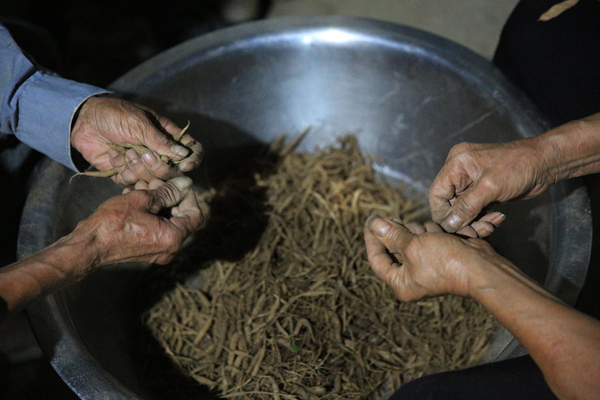 2021-09-24晚飯后,父母親一起擇白天在山上挖的草藥“太子參”