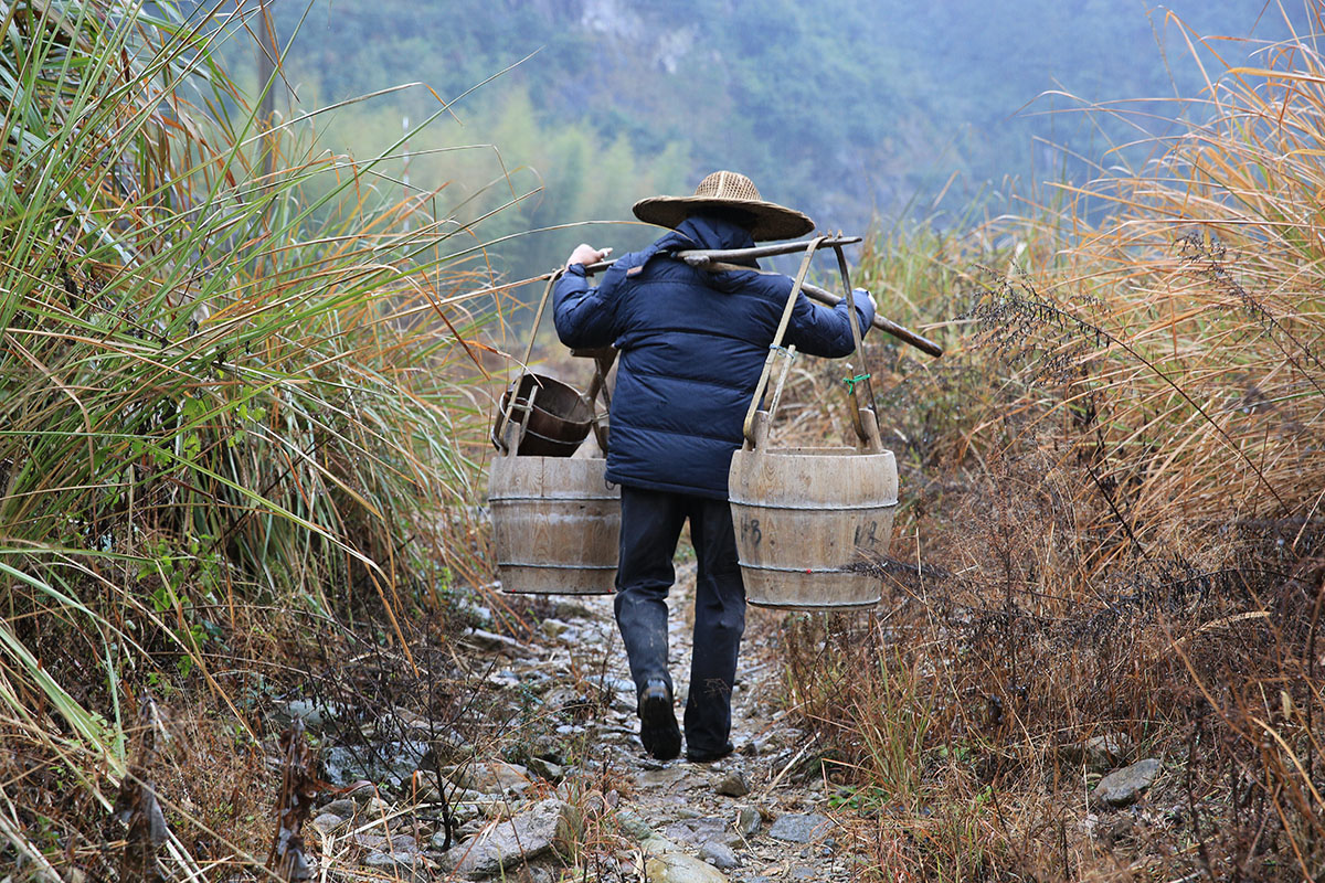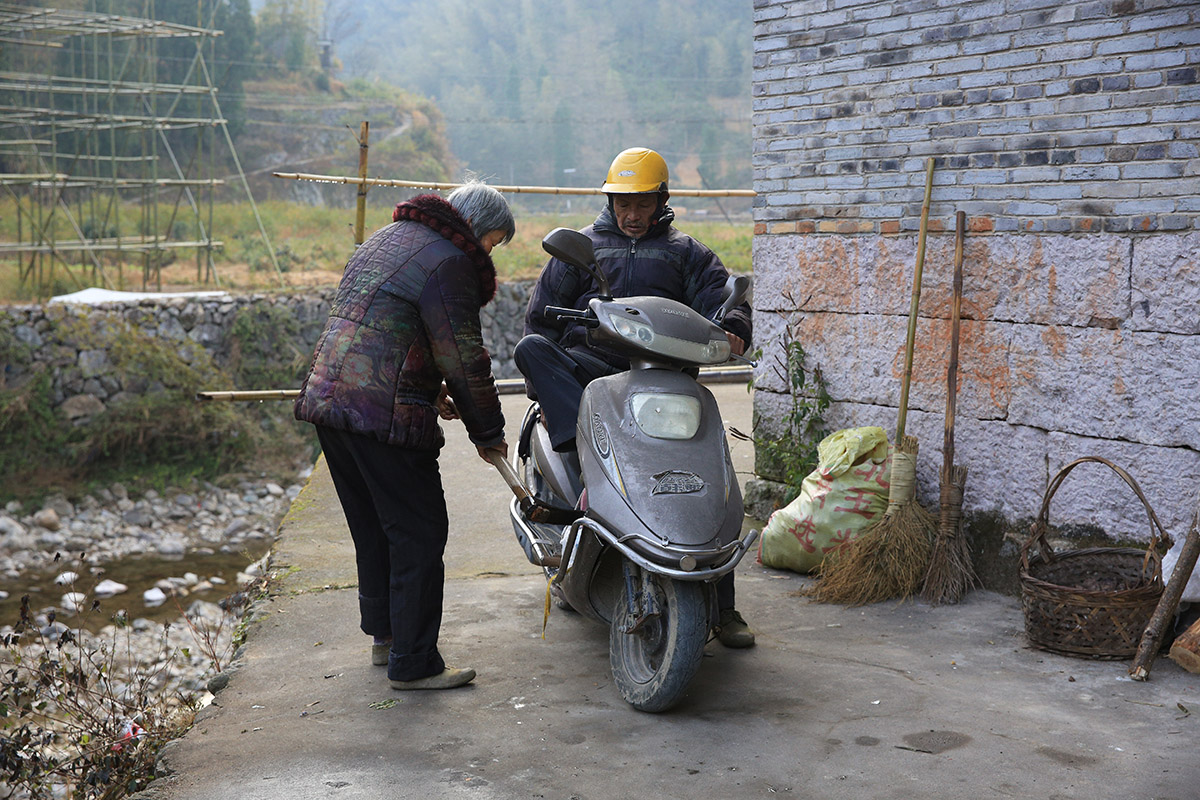 2019-12-04父親出門干活,母親給父親綁好鋤頭