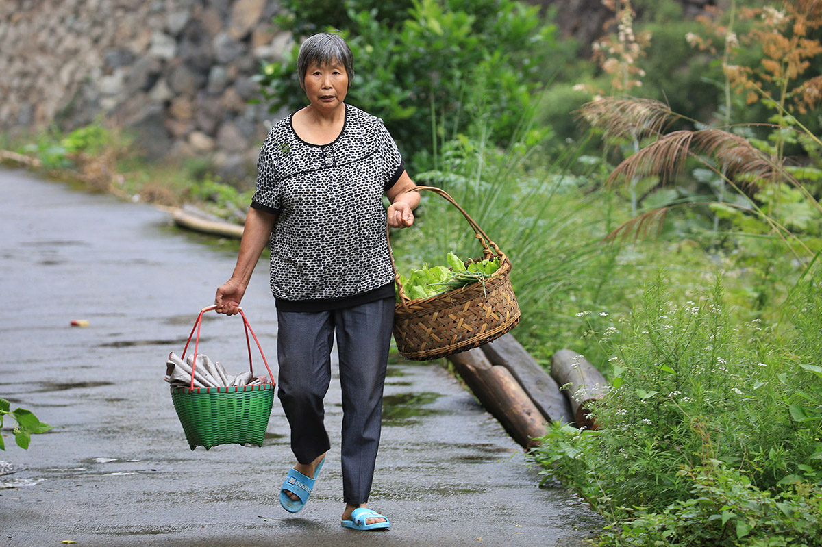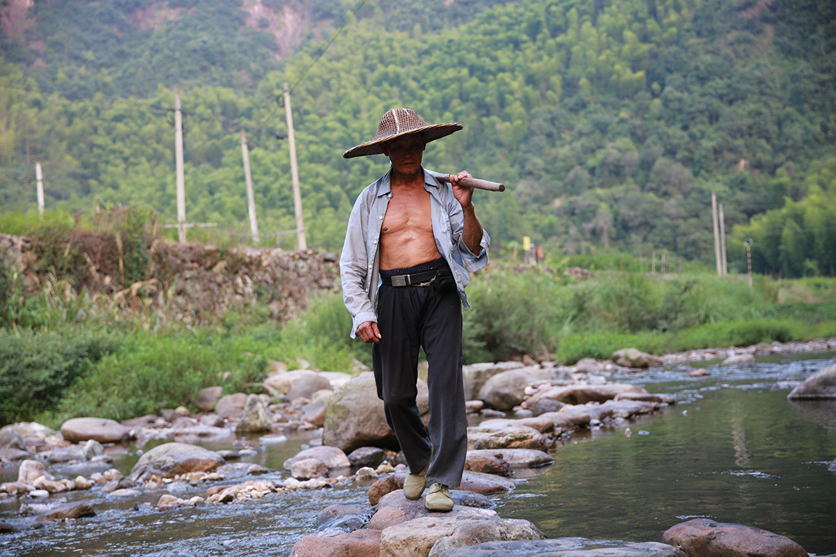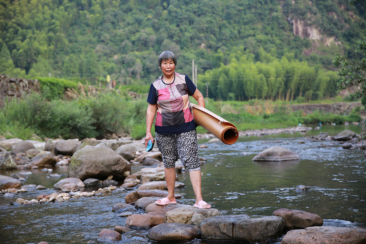 2018-07-28母親在門前小溪里洗竹席