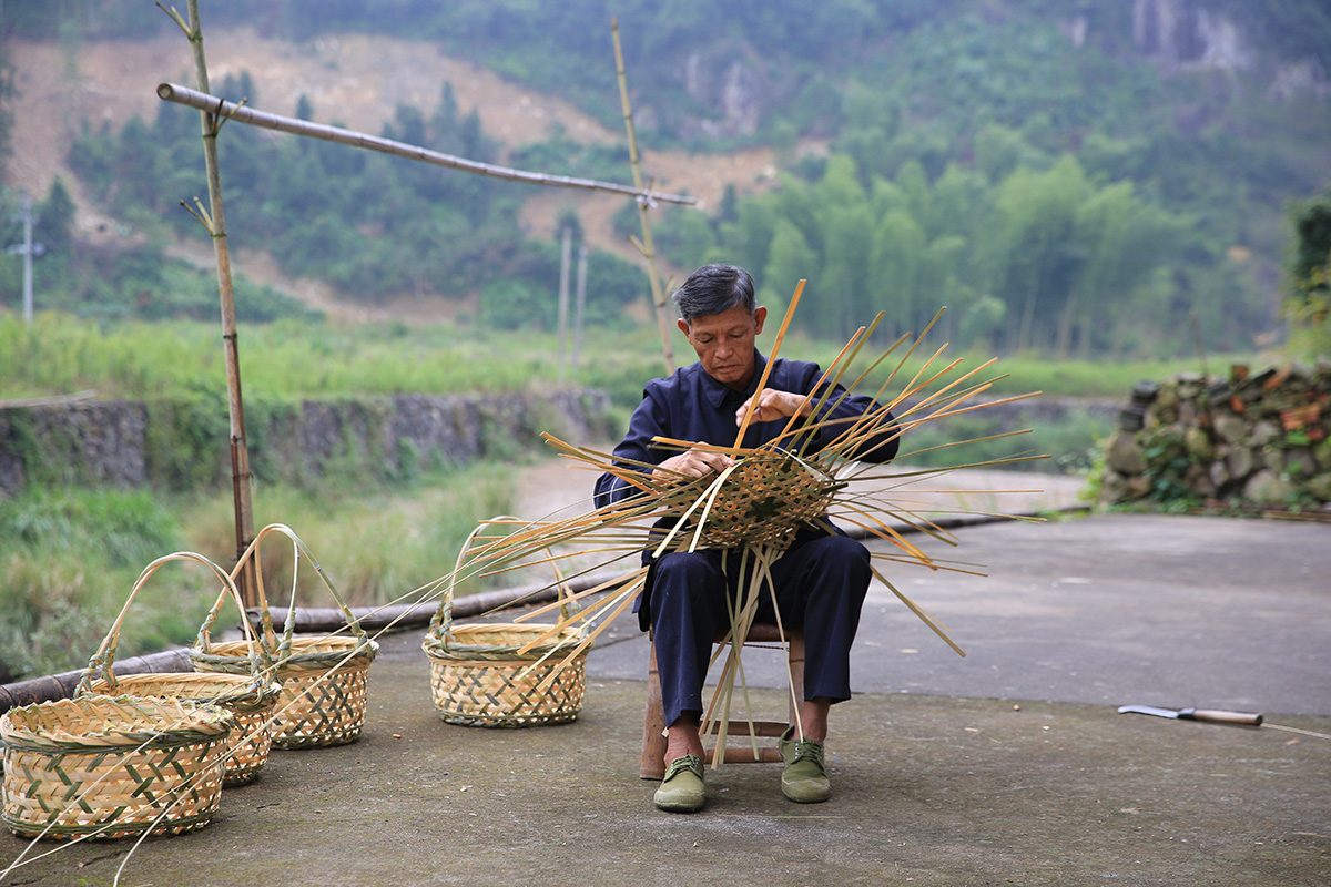 2020-09-25父親趁農(nóng)閑砍了竹子做菜籃子