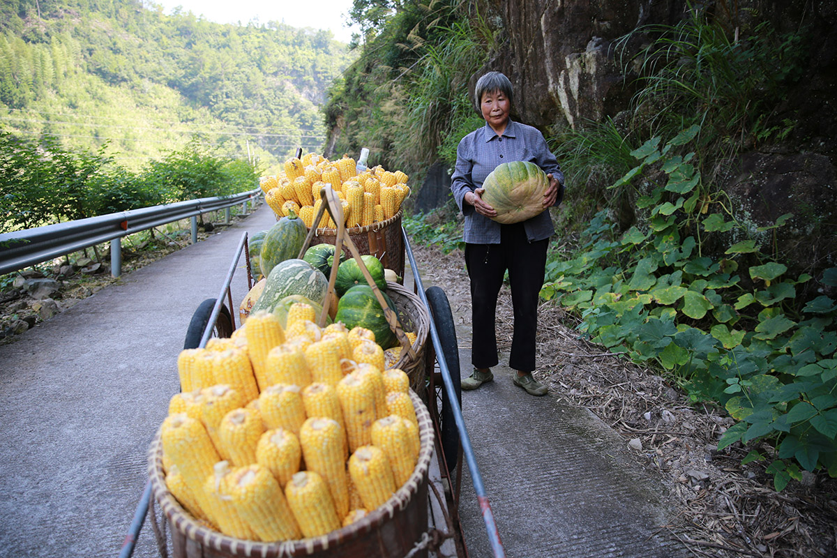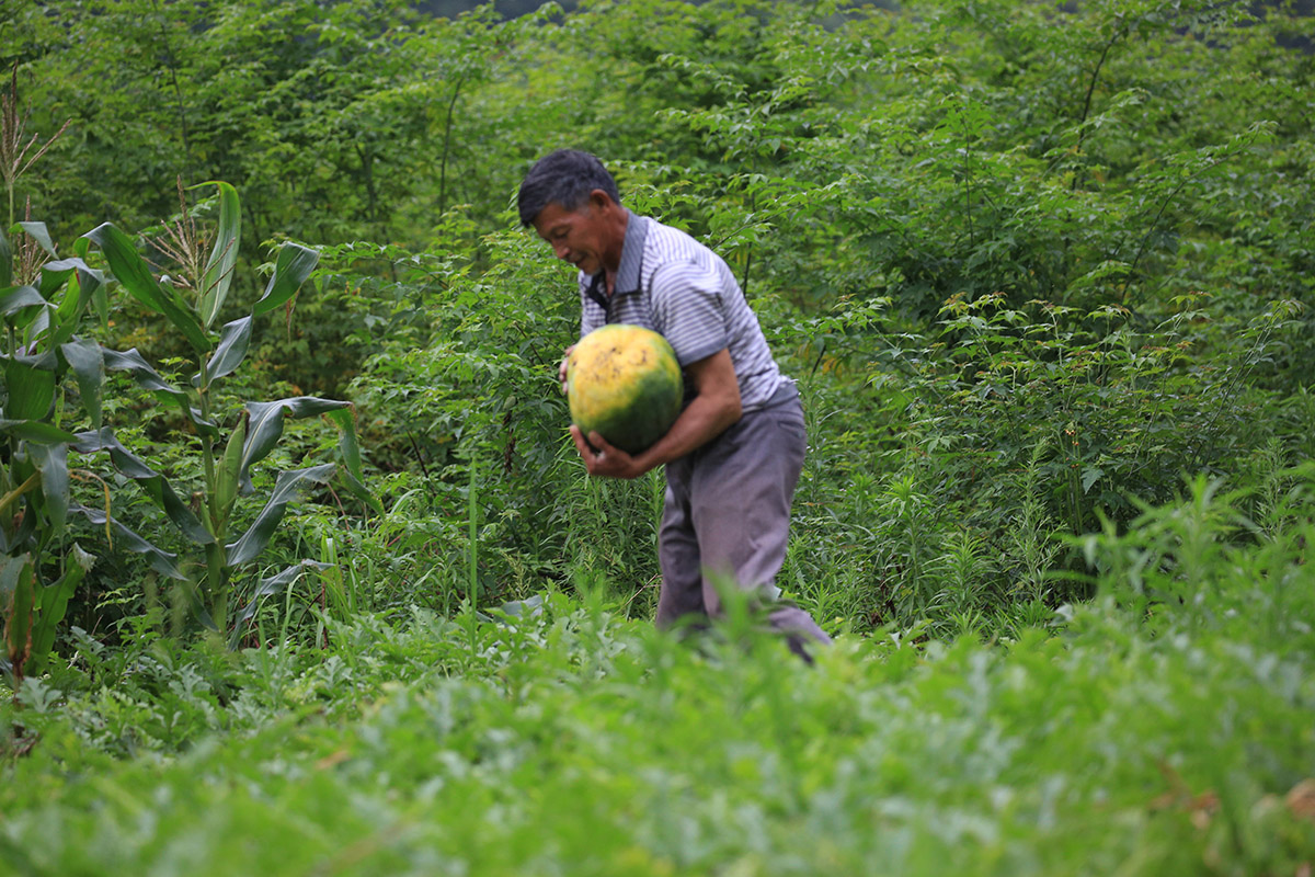 2018-07-29母親在路邊摘父親種的南瓜,父親在山上掰玉米