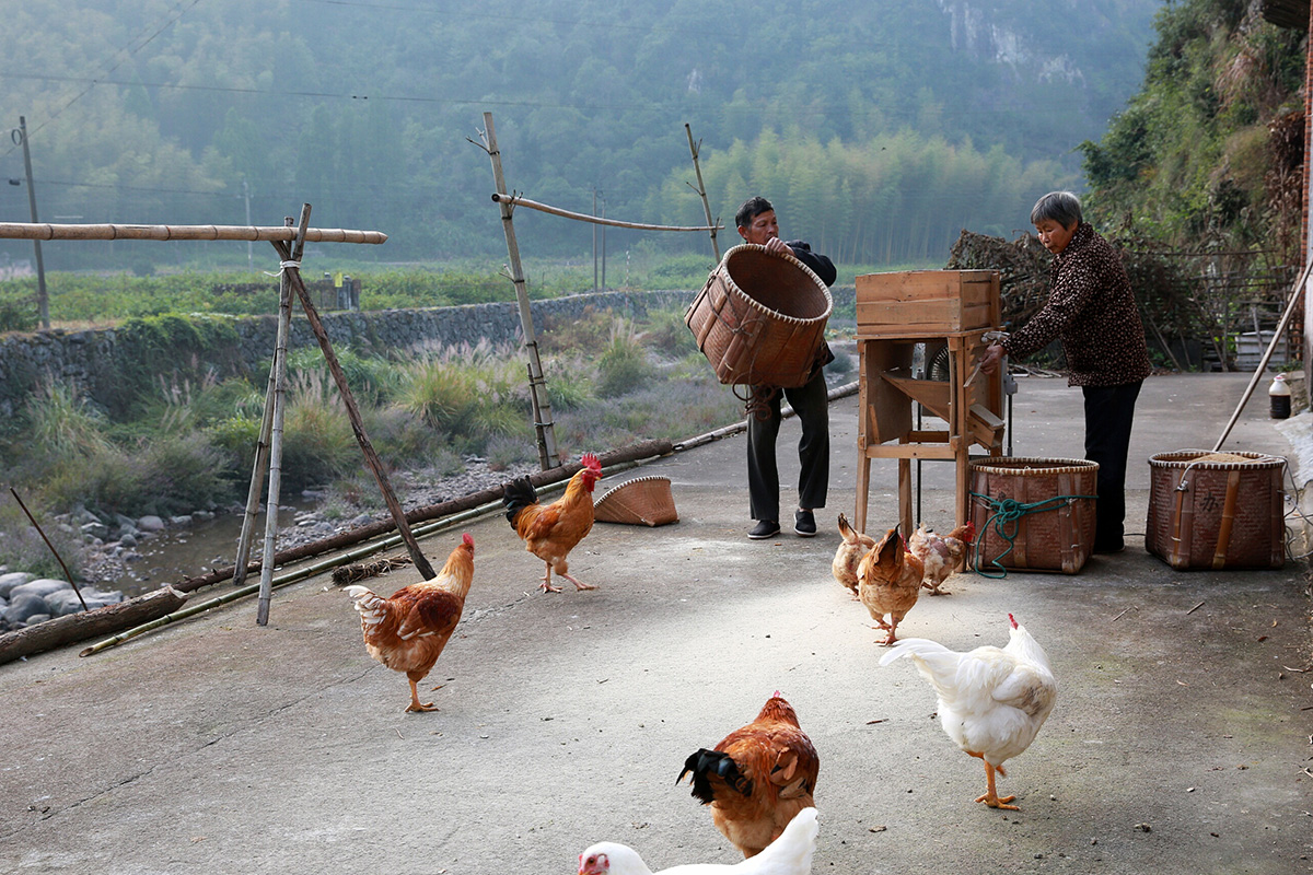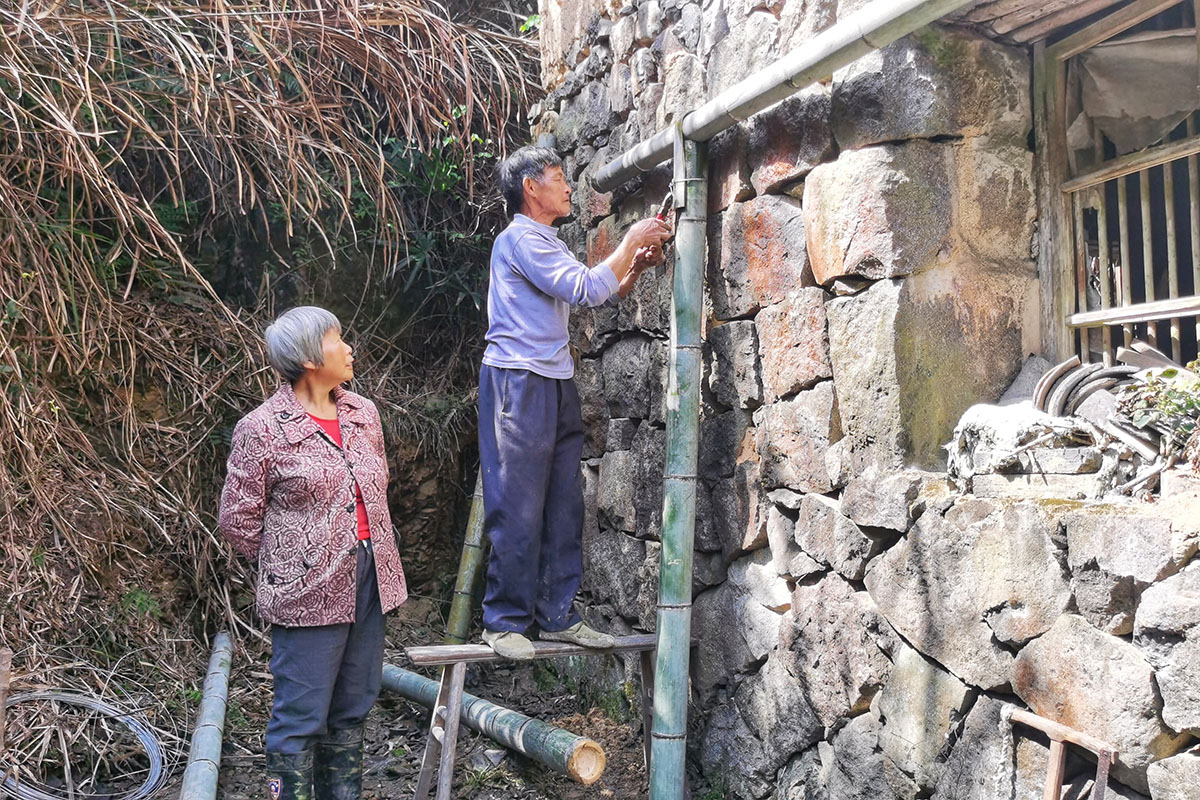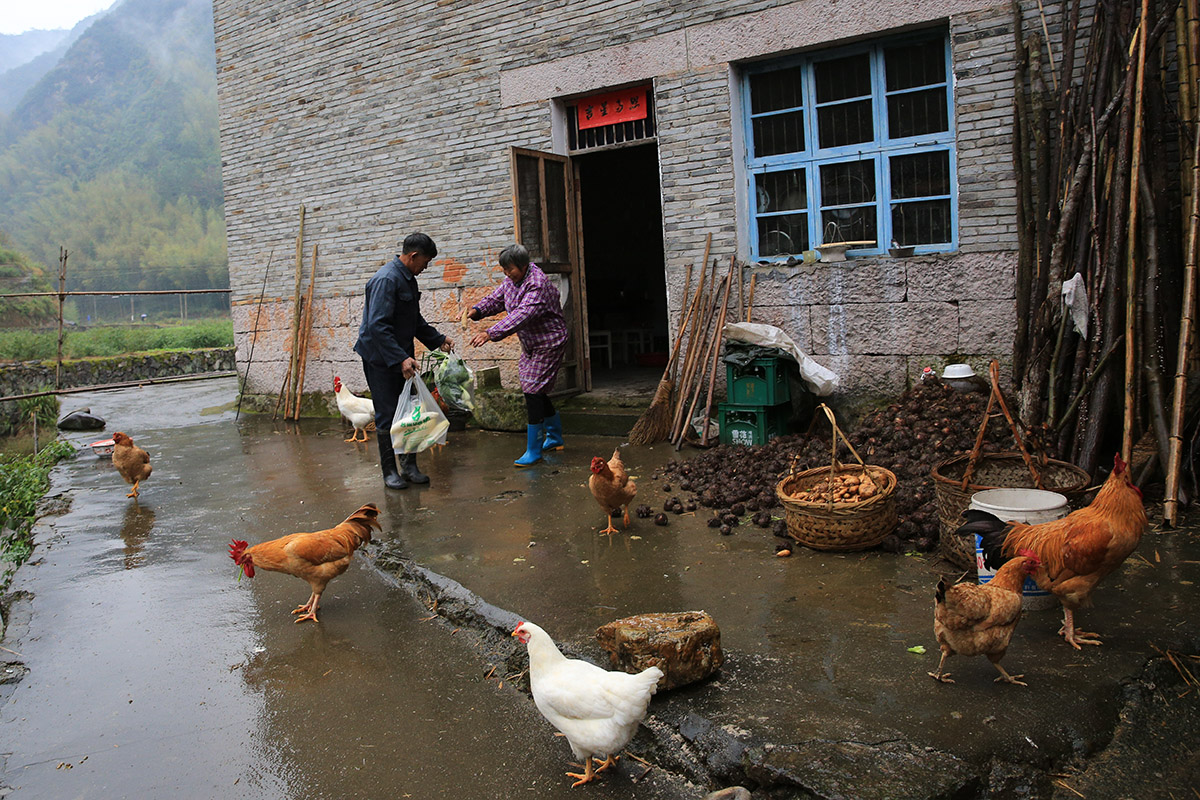 2021-04-17因建朱溪水庫老家拆了,父母親搬到更偏僻的山村租住,父親在給雞鴨造房子,母親在邊上看著