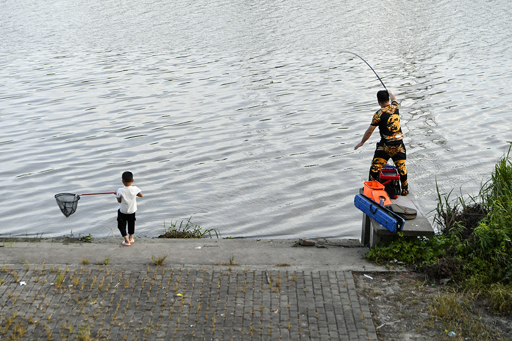 返回頂部>> 照片說(shuō)明: 夏日河邊釣魚(yú)也成了一道靚麗的風(fēng)景線