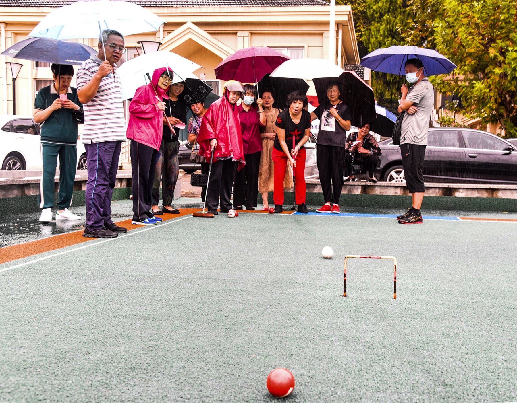 返回頂部>> 照片說(shuō)明: 2.作品組照.《老有所樂(lè)-打門球》、拍攝時(shí)間:2022.10.12、拍攝地點(diǎn):玉環(huán)、描述:退休的眾多干部職工喜歡上了各種各樣的老年人體育活動(dòng)項(xiàng)目,經(jīng)常參加鍛煉打乒乓球、門球、地?cái)S球等豐富多彩的屬于他們喜歡的娛樂(lè)性生活健康體育項(xiàng)目,他們是快樂(lè)鍛煉、快樂(lè)健康,很是讓人羨慕的晚年退休生活。下雨天也堅(jiān)持鍛煉,積極性很高。
