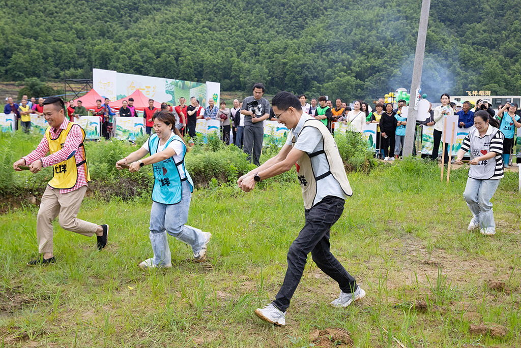 作品介紹: 6月7日“逸享西鄉(xiāng)・悅動(dòng)上垟”2024上垟鄉(xiāng)首屆村運(yùn)會(huì)在上垟村“飛垟?shù)咎铩睙狒[舉行.活動(dòng)以“傳承農(nóng)耕文化”為主題,讓當(dāng)?shù)卮迕癯鹘牵瑏?lái)自11個(gè)村的近200名村民在充滿(mǎn)農(nóng)味、土味、趣味的運(yùn)動(dòng)項(xiàng)目中揮灑汗水、比拼技能、盡享運(yùn)動(dòng)的快樂(lè)。