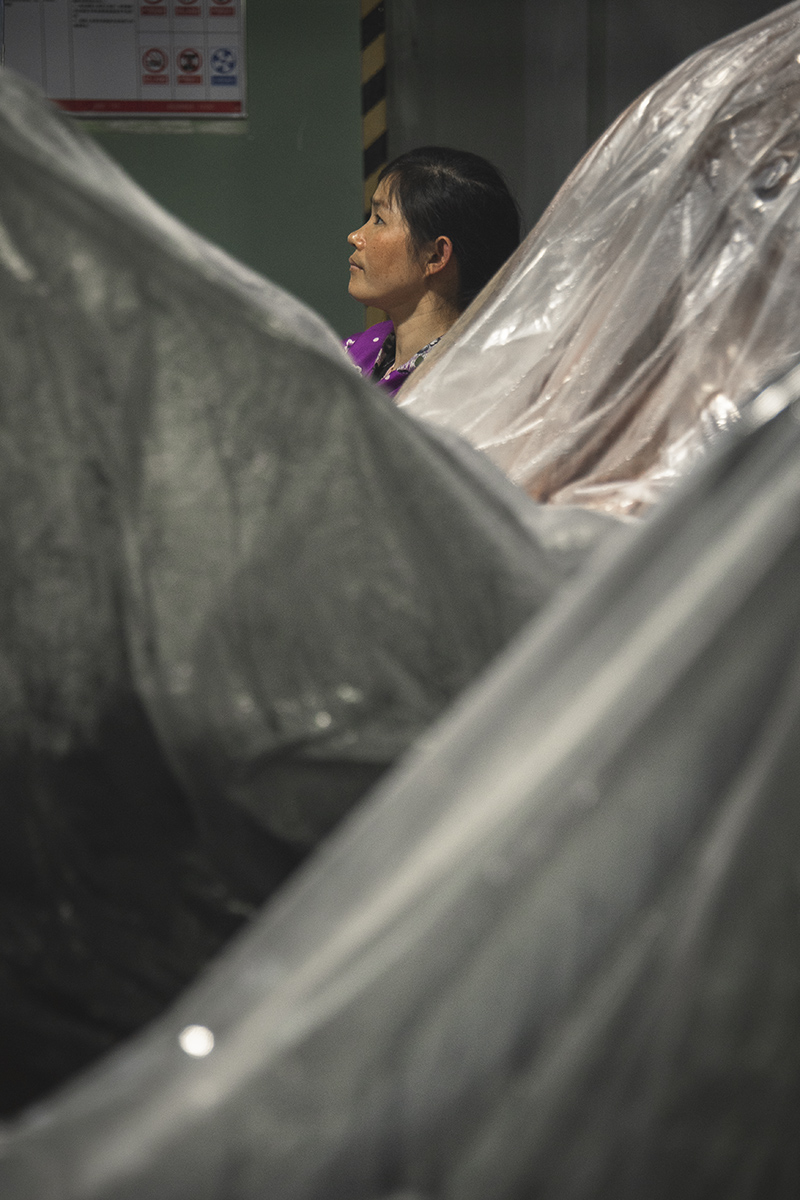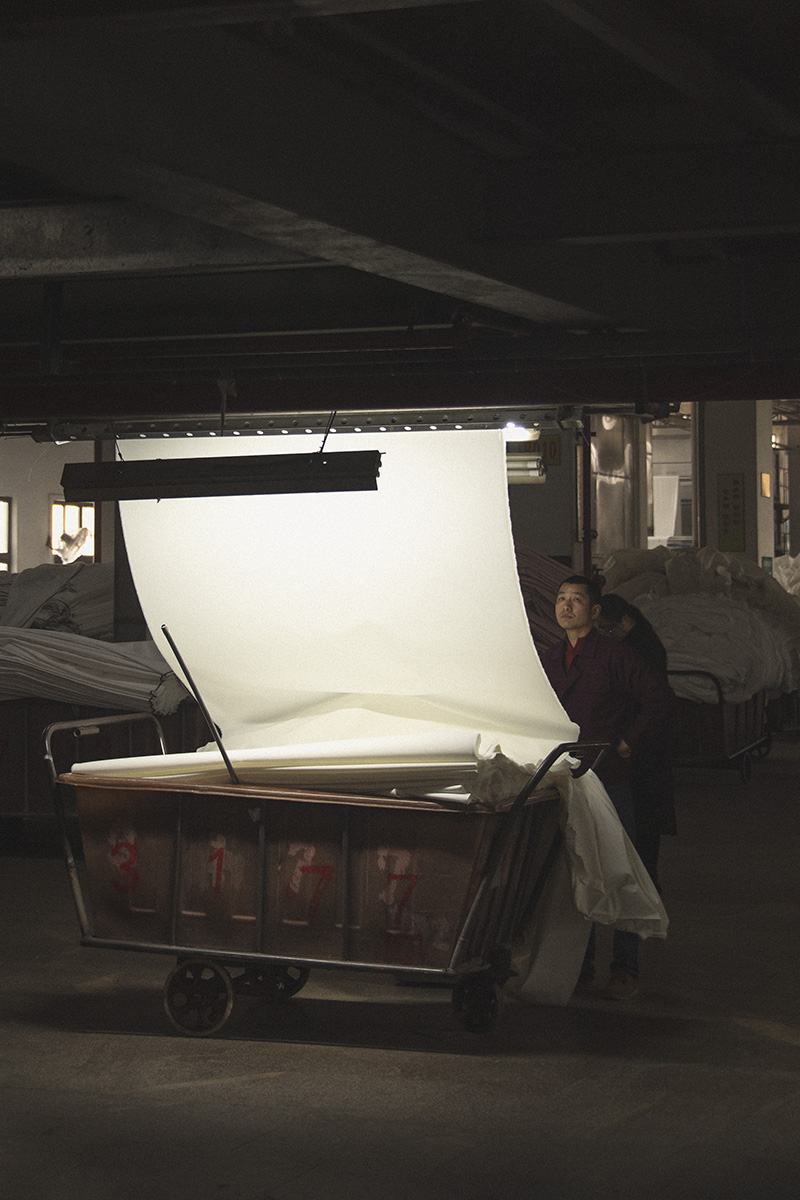 返回頂部>> 照片說明: 在蕭山的航塢山簏,有一個(gè)1平方公里的小村,擁有亞洲最大的漂染基地。在午后的車間里,一份關(guān)于時(shí)光的記憶呈現(xiàn)在漂染車間四處,細(xì)膩的針織線、厚厚的工作臺(tái)本、與窗前借著陽光的熱水瓶。車間的細(xì)節(jié)印證著勞動(dòng)的最為樸實(shí)的美麗。
