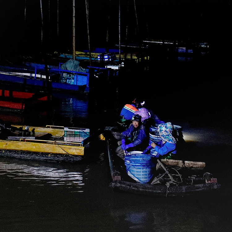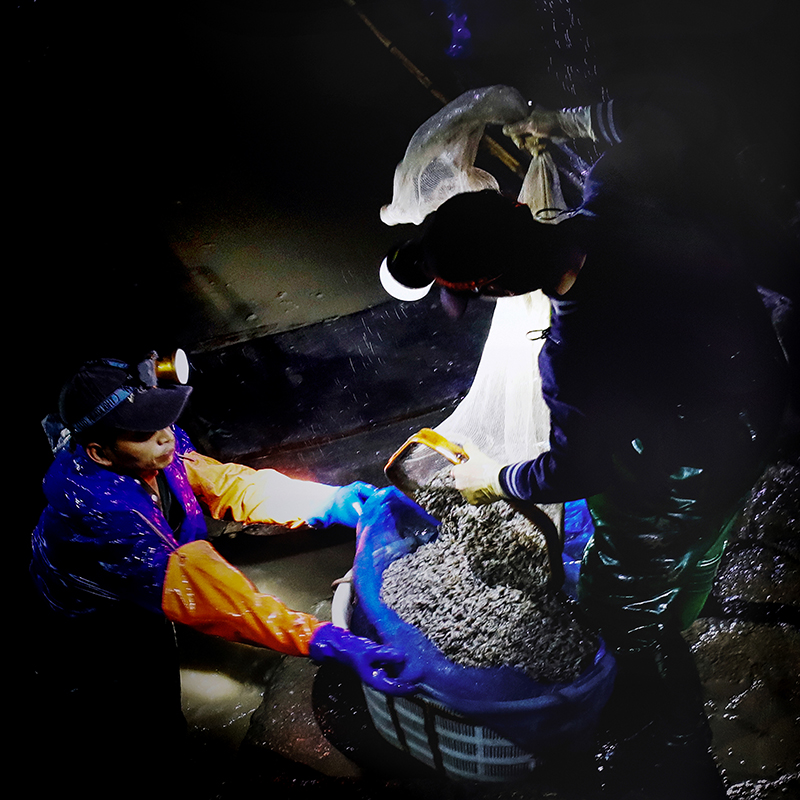 作品介紹: 三門沿海灘涂擁有各種海鮮養(yǎng)殖基地,其中花橋柵下為國家縊蟶種質(zhì)資源保護(hù)基地,縊蟶養(yǎng)殖面積829.4畝。當(dāng)?shù)貪O民根據(jù)海洋潮水變化及縊蟶種子生長特性,進(jìn)行日夜交替出海作業(yè),風(fēng)雨無阻。本作品記錄漁民夜間利用原始的勞作方式,收割縊蟶種子的過程,反映了漁民們用勇氣和毅力創(chuàng)造著美好生活。這種作業(yè)方式,勞動強度強,體力消耗大,作業(yè)難度高,隨著農(nóng)村勞動力的減少,這樣的原始作業(yè)方式將要消失。