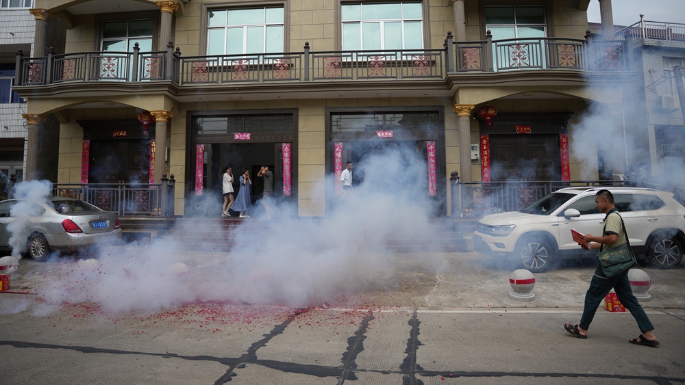 當(dāng)郵遞員一到來,小王家立即鳴放炮竹慶祝。