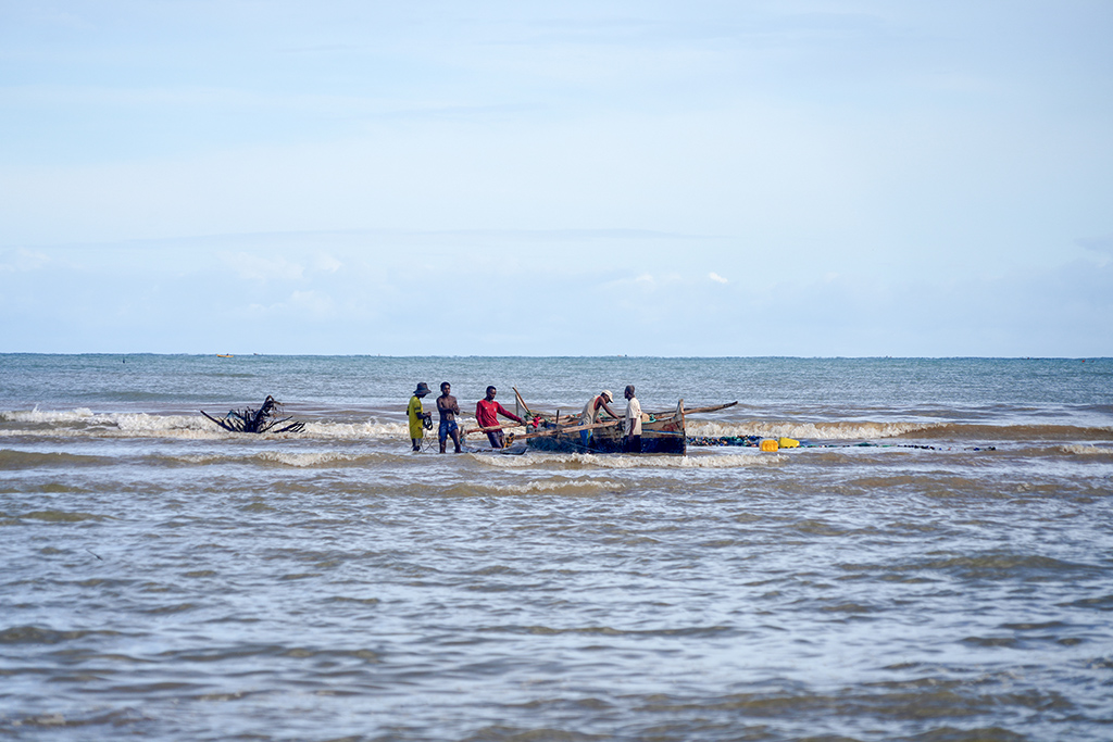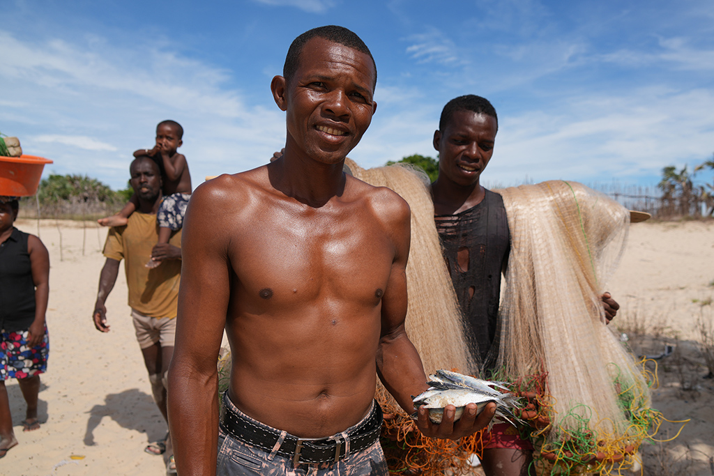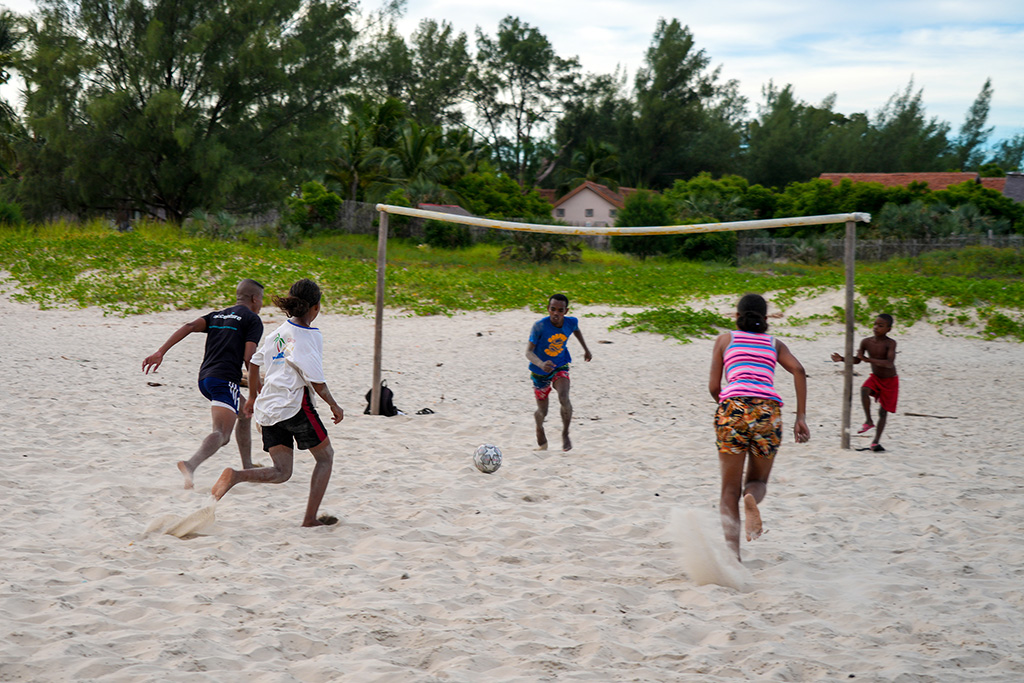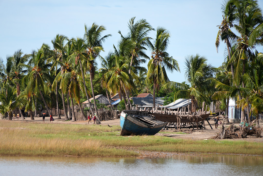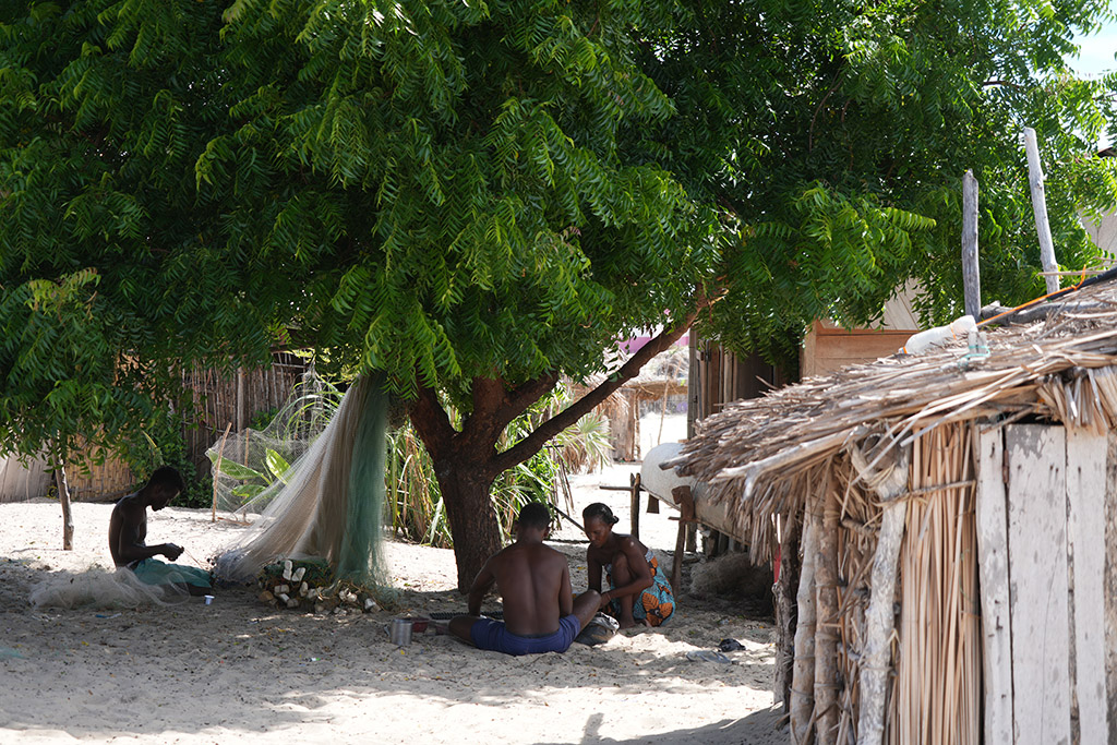馬達(dá)加斯加,穆龍達(dá)瓦,漁民們每天開著獨(dú)木舟,潮漲而出,潮退而回,女人們在海邊等丈夫滿載而歸,在樹陰底下補(bǔ)網(wǎng),孩子們在沙灘上打球。