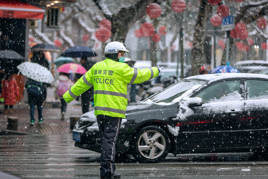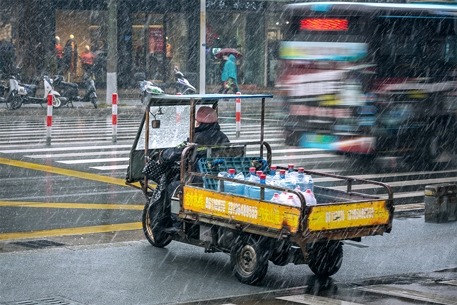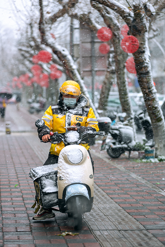 作品介紹: 據(jù)臺(tái)州發(fā)布,2024年初這場(chǎng)突如其來(lái)的大雪,溫嶺主城區(qū)最大積雪深度達(dá)8CM,為近30年來(lái)最大。特大風(fēng)雪中,交通警察、市政工人、外賣小哥、環(huán)衛(wèi)工人等堅(jiān)守一線解決民生服務(wù)民眾,給社會(huì)帶來(lái)了安定、溫馨和美好,生活有序進(jìn)行著。