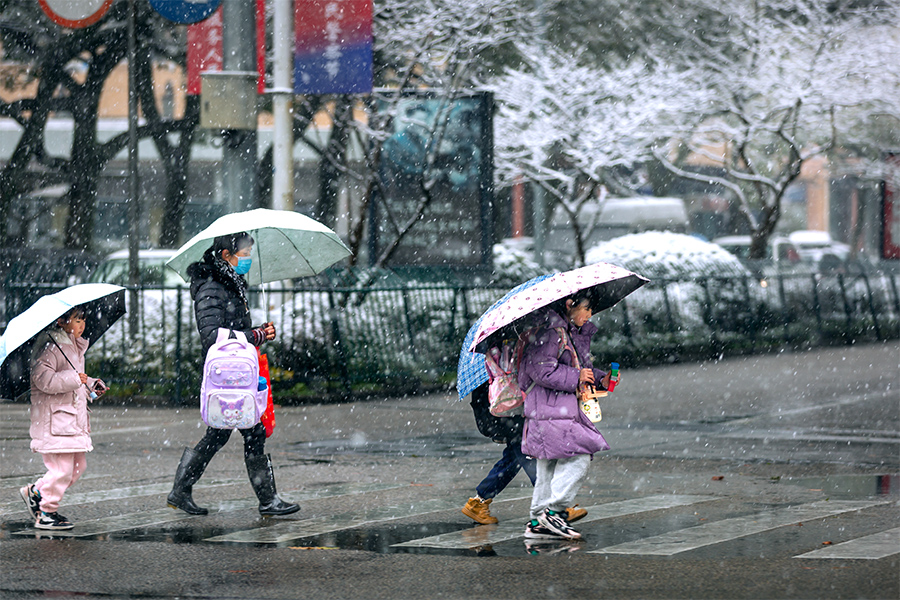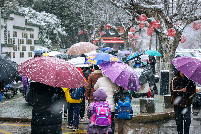 返回頂部>> 照片說(shuō)明: 放學(xué)路上的家長(zhǎng)和孩子們
