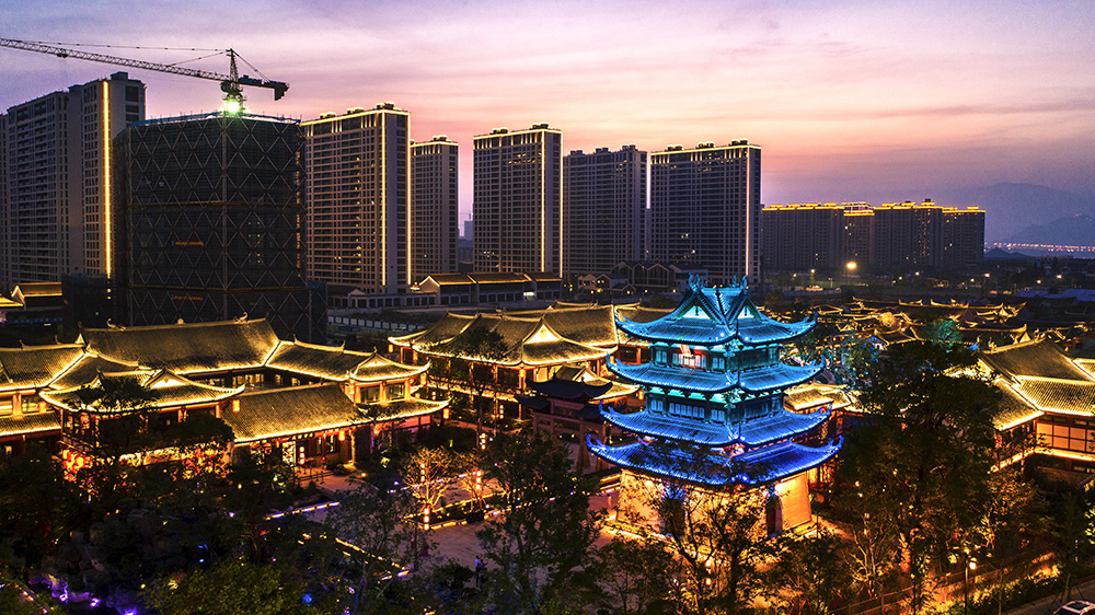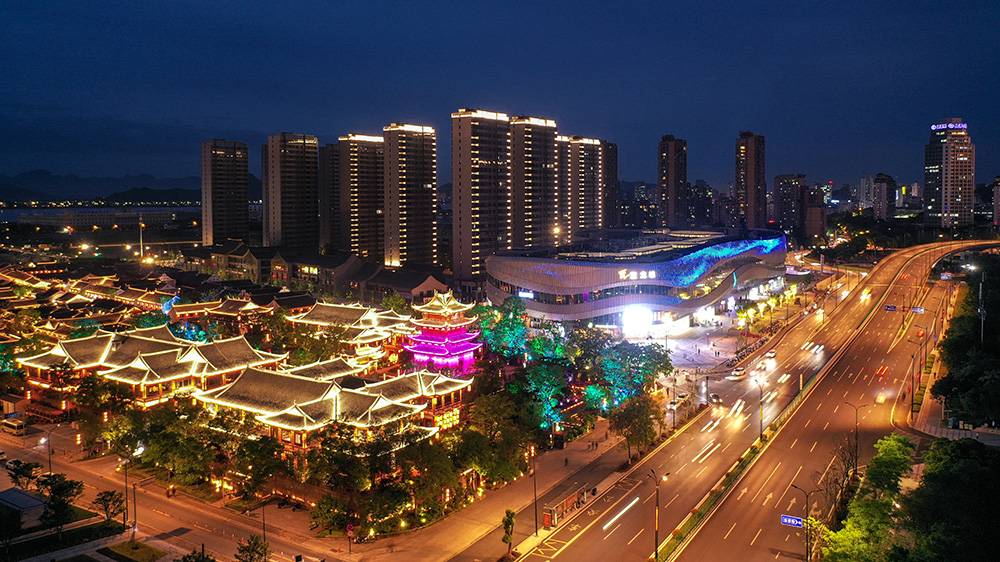 返回頂部>> 照片說明: 拍攝于2022.6.16開業(yè)后的葭芷老街夜景航拍片。