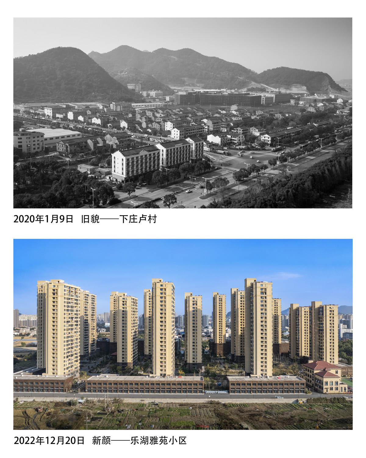 返回頂部>> 照片說(shuō)明: 鄉(xiāng)村新繪5:2020年1月9日 舊貌——下莊盧村+2022年12月20日 新顏——樂(lè)湖雅苑小