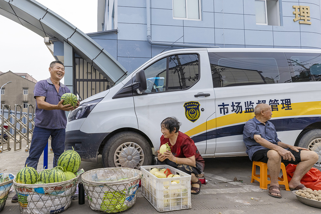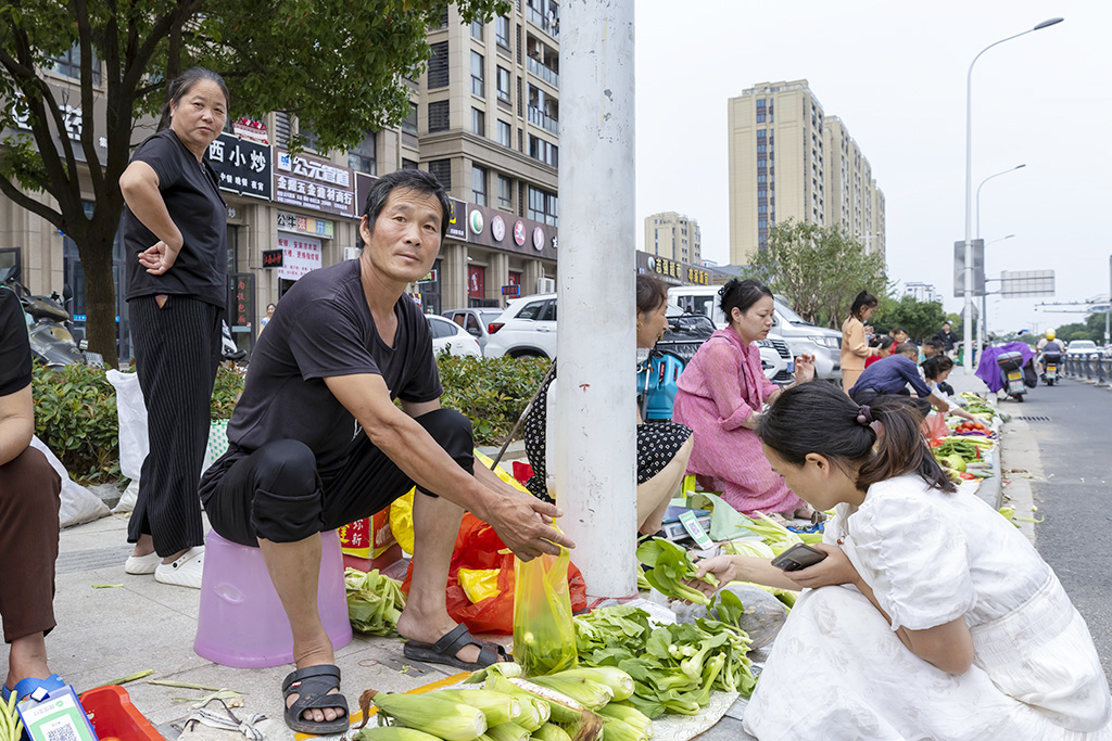 返回頂部>> 照片說明: 6-1 鄉(xiāng)村街道市場管理處門口,農(nóng)民們悠閑得賣著自家種的農(nóng)產(chǎn)品,畫面看著很和諧。