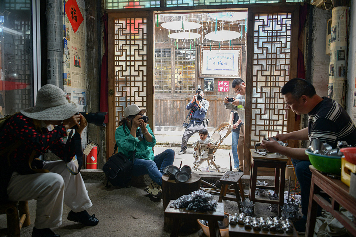 作品介紹: 圖片展現(xiàn)了一群攝影師全身心投入拍攝非遺制作的場景。