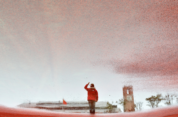 2012.3.6.+拍攝于下沙杭州聾人學校.+ 《向國旗敬禮》,雨停了,我去操場上看到了地上積水,里有一位女生對國旗敬禮的倒影真好看。