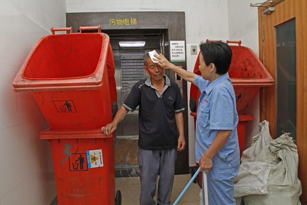 《在生活的路上,艱辛并快樂著》2012.07 浙江杭州。他的工作是回收、分類、整理帶有病菌和病毒的醫療垃圾,稍有不慎就會感染致病;他愛人在同一家醫院做清潔工;他們租住在一個12平米的房間里;在生活路上,他們很艱辛,但他們沒有不快樂,因為他們彼此關愛。