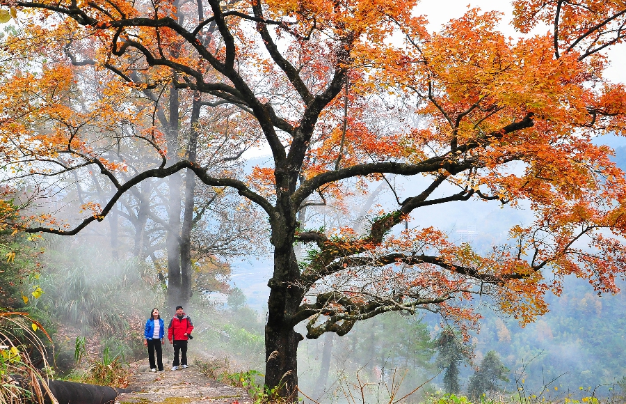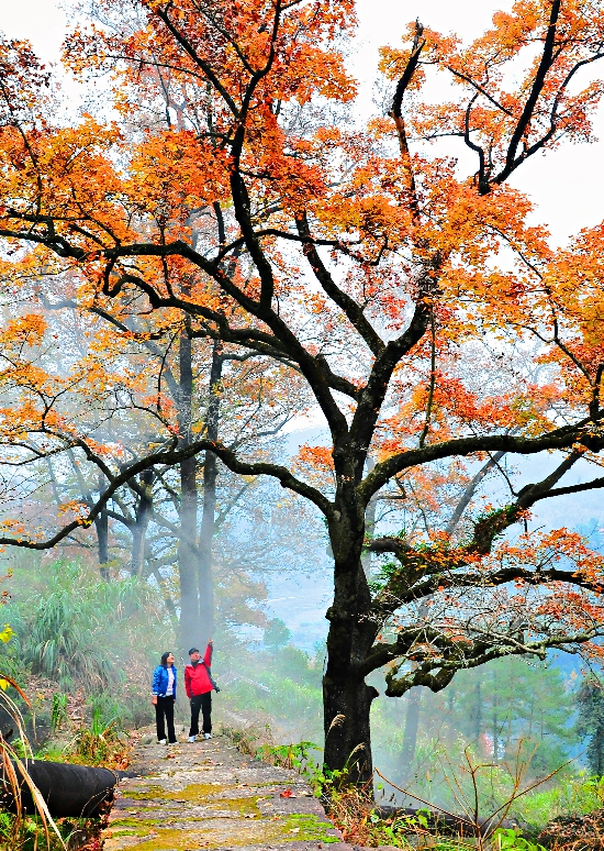 紅楓,古道,冬日,暖陽