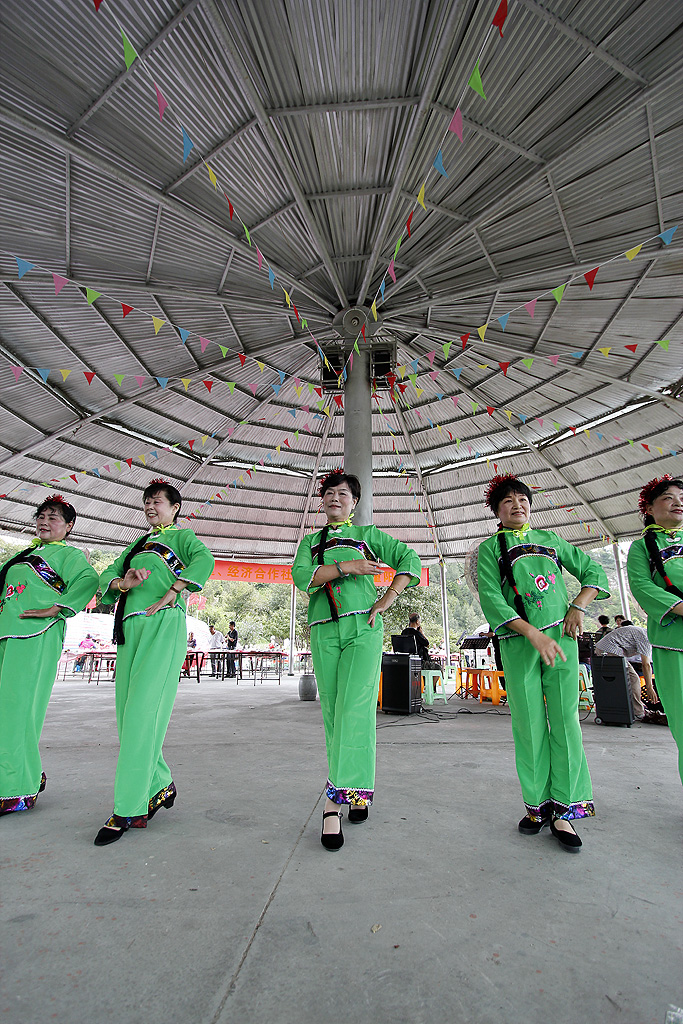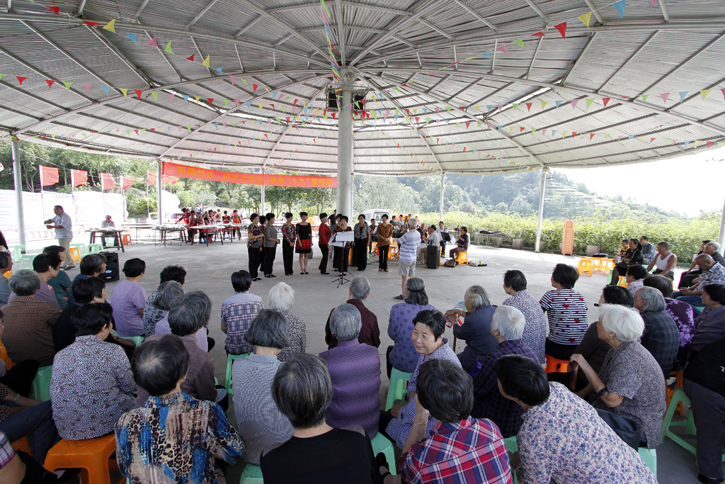 玉環(huán)的西溪社區(qū)與經(jīng)濟合作社一起在中青嶺活動點舉辦慶祝重陽節(jié)活動,邀請玉環(huán)縣老年大學(xué)越劇班學(xué)員前來演出。