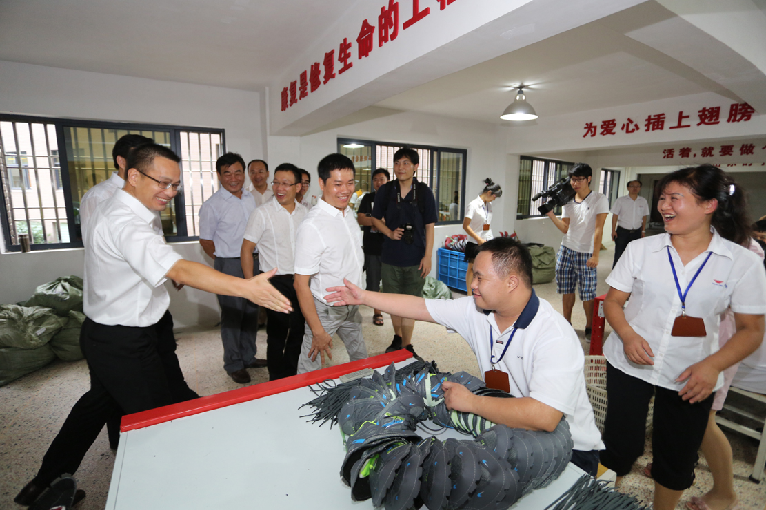 作品介紹:  2013年8月30日,溫嶺市市長(zhǎng)李斌一行看望臺(tái)州 獨(dú)家龍鞋業(yè)公司工療站的殘疾工友,當(dāng) 市長(zhǎng)李斌走到一殘疾工友前時(shí)伸出手與殘疾工友握手,以示問(wèn)候!