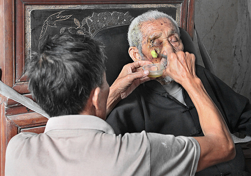 作品介紹:  七旬老人悉心照顧百歲爺爺。