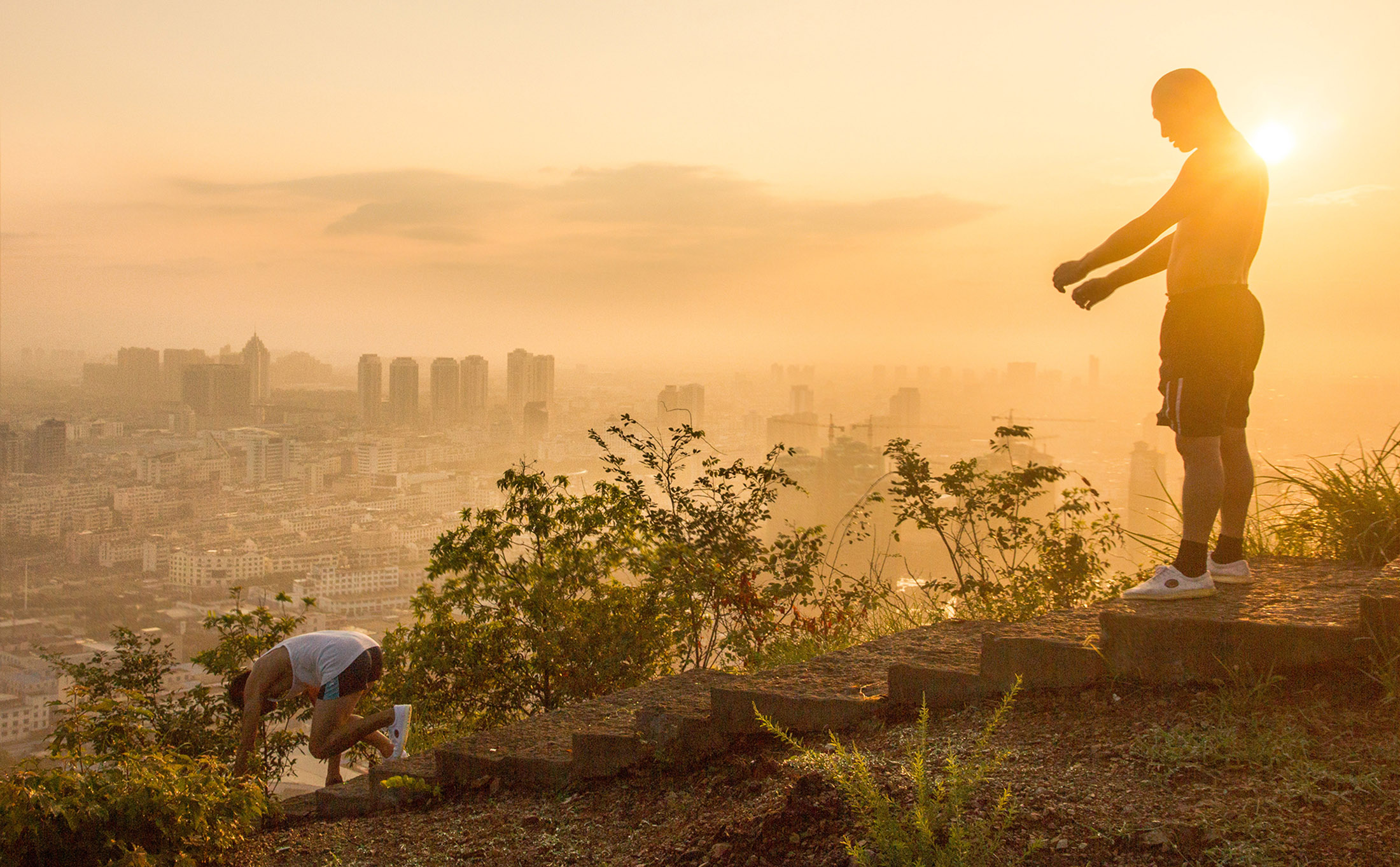 石板路從山下鋪到山頂,山頂鋪到了一個(gè)平臺(tái)。供廣大市民早鍛煉