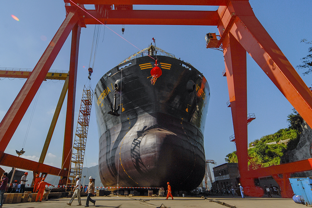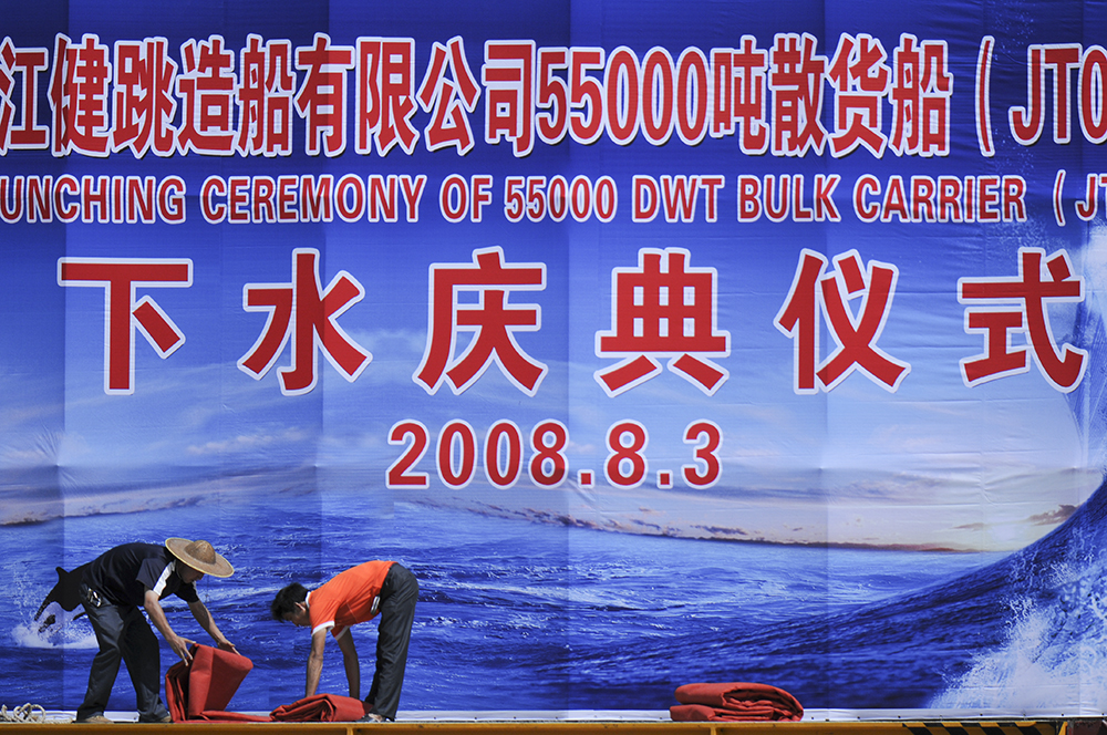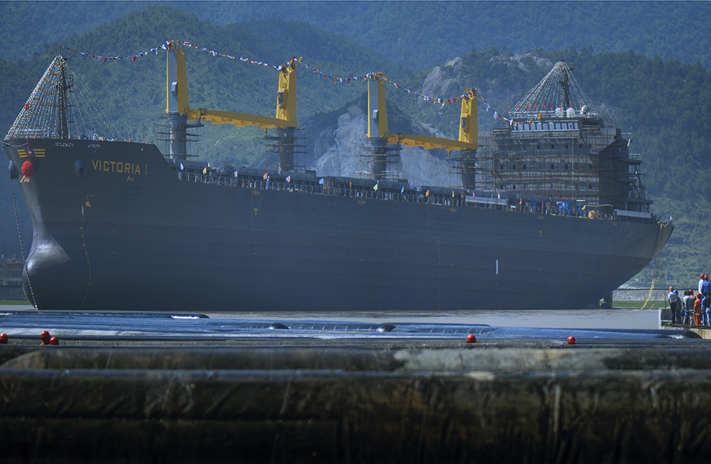 1月22日,浙江健跳造船有限公司建造一艘5.5萬噸散貨船順利下水。 據了解,這艘散貨船船長190米,寬32.26米,型深18米,于去年2月開始,采用國內最先進的分段制造工藝造成,總造價2億多元。