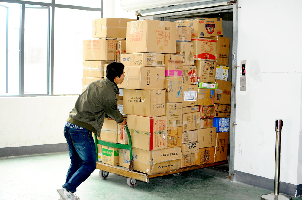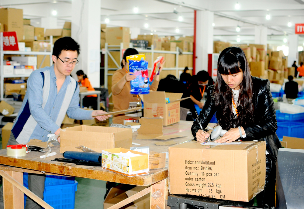 2014年11月11日聚寶盆電子商務有限公司倉庫忙碌場景。