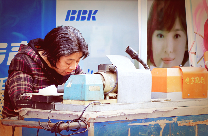 2011年11月28日,溫嶺市城北街道老街,大娘已經在這里配了30年的鑰匙了。