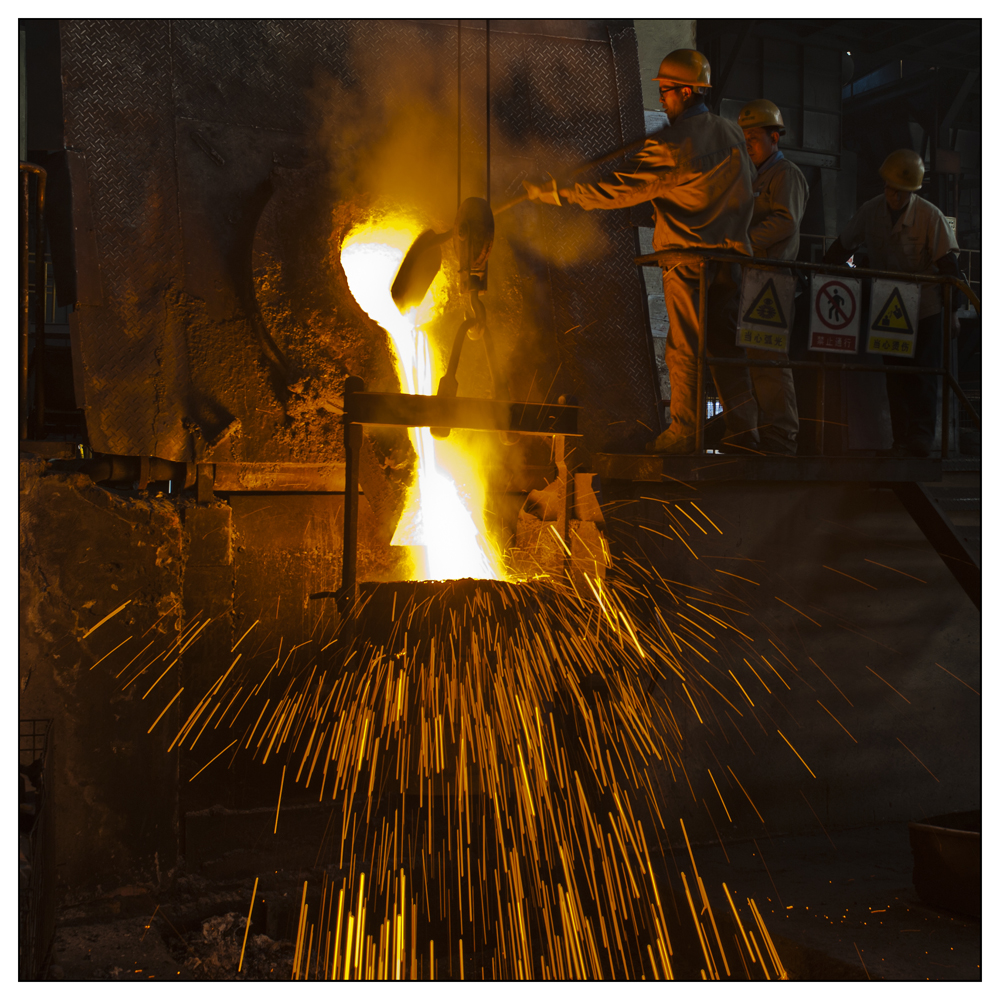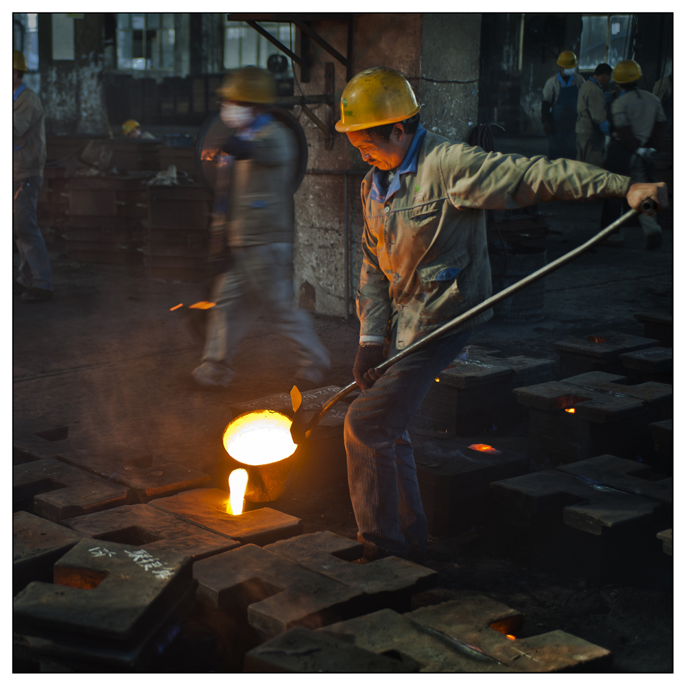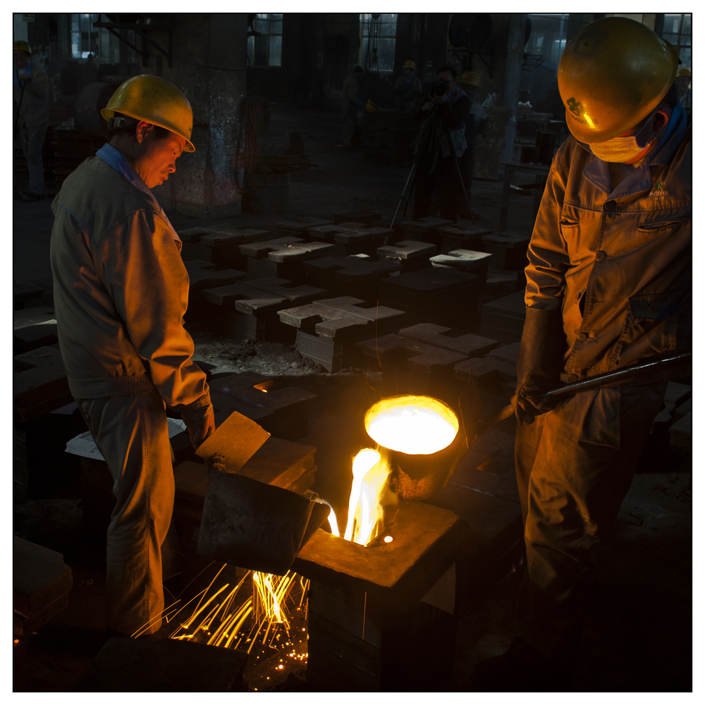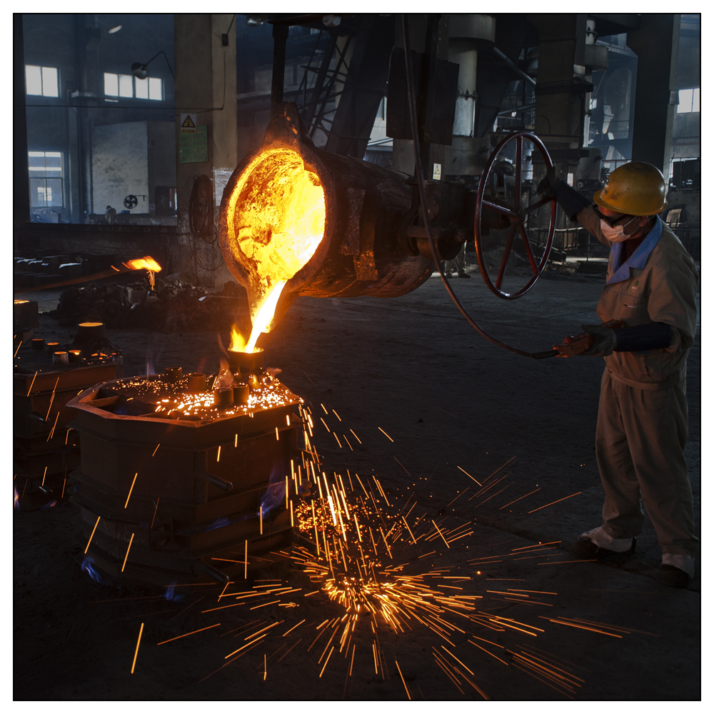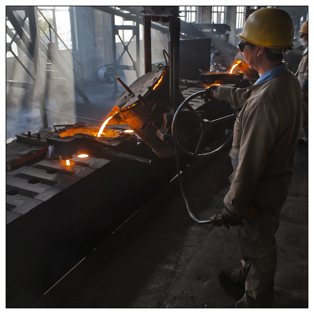 浙江中捷鑄造公司鑄造車間工人正在生產