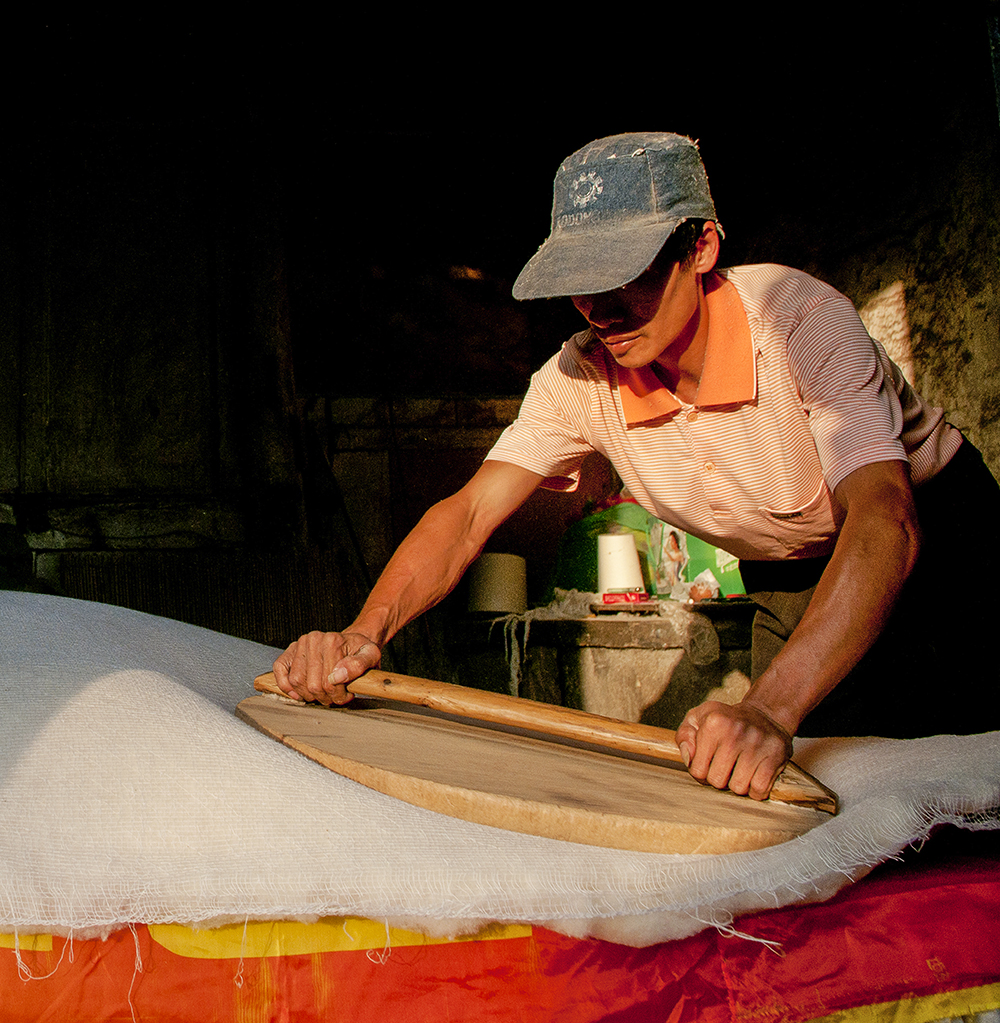 加工被絮是臺州人居家生活常去的地方,臺州人喜歡自己做被絮,質量好,心中有數,大凡嫁女兒都要去做上幾床被絮,表示喜慶。所以被絮加工作坊生意也非常好。