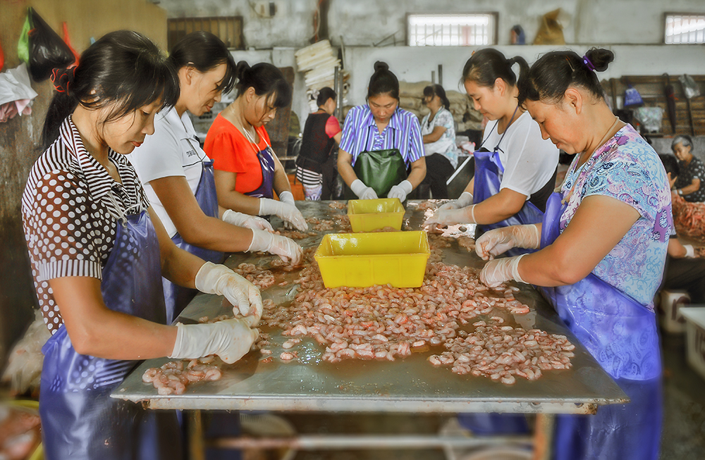 據介紹,溫嶺海捕蝦年產量連續3年超過20萬噸,2009年全市海蝦捕撈量達25.07萬噸,約占全省蝦類產量的30%。全市有海蝦加工企業400余家,規模以上企業212家,其中有27家企業取得QS證書。近年來,我國對歐盟出口紅蝦及蝦仁的海捕蝦原料大部分來自溫嶺漁區。
