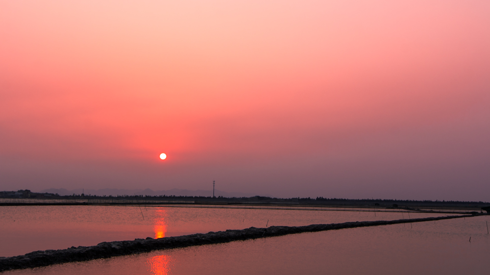 灘涂養殖場落日