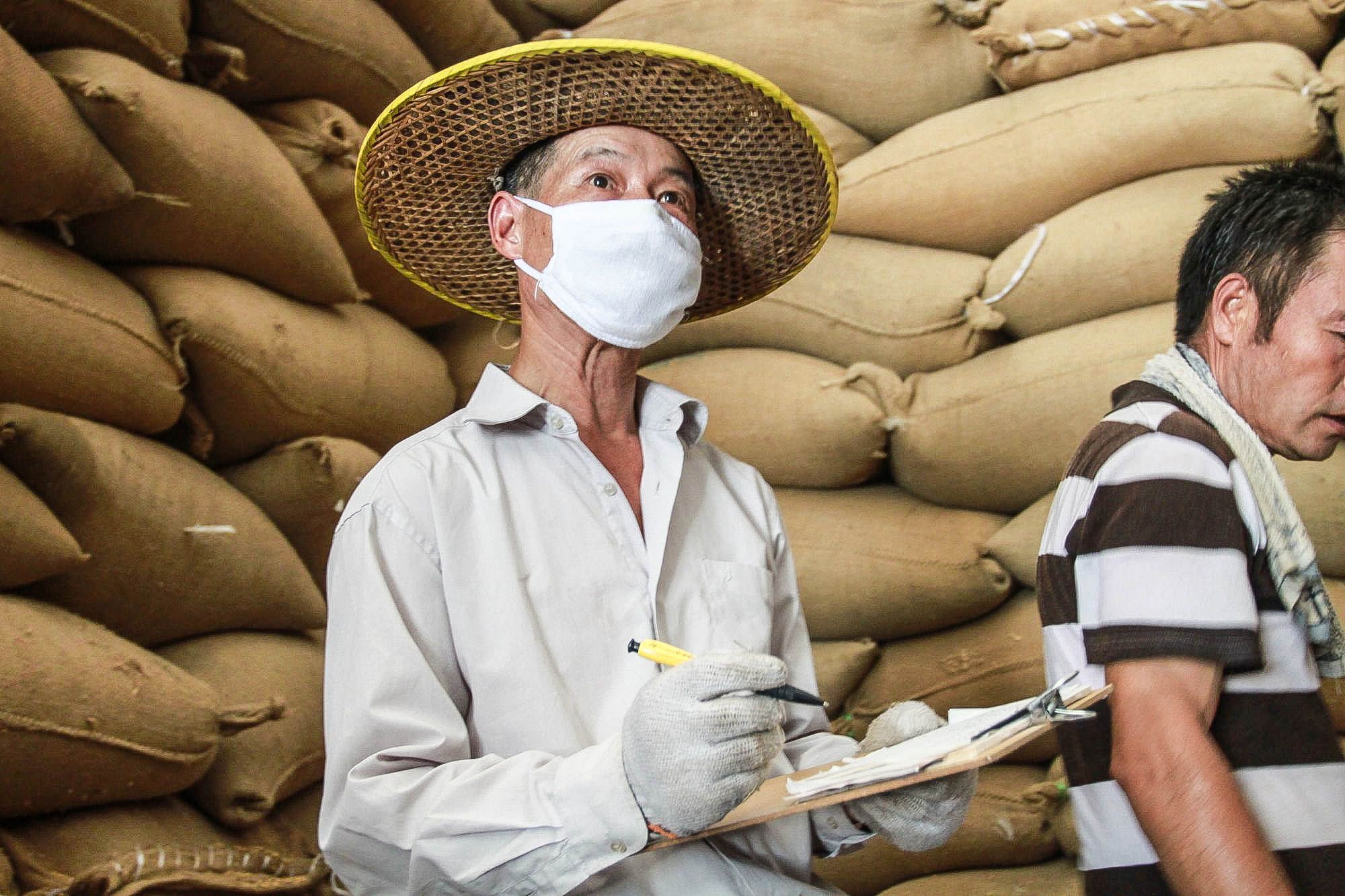 在椒江糧食收儲公司糧庫,種糧大戶運糧車滿載一袋袋稻谷來賣糧,一派繁忙的景象。