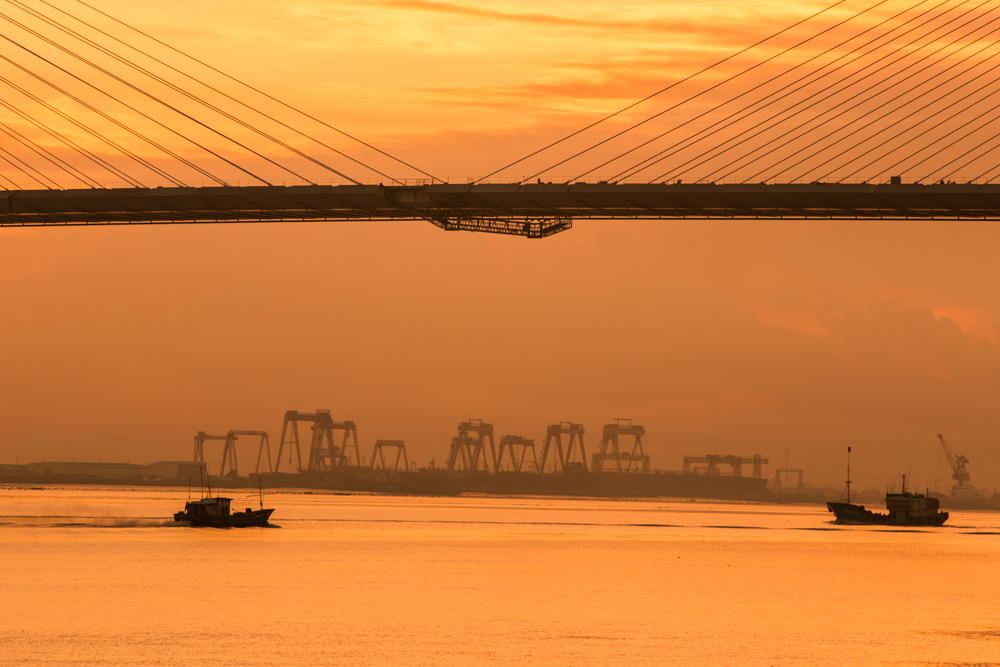 作品介紹: 出海的,回港的在日出的二橋下相遇