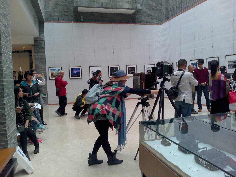 2014.11.8上午,書畫院展廳,一個美女攝影師在玩座機。