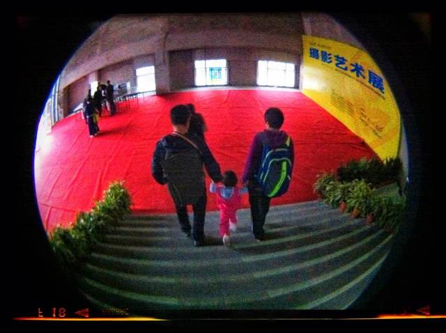 科技館的門口遇見一家三口觀展后,高高興興把家還。