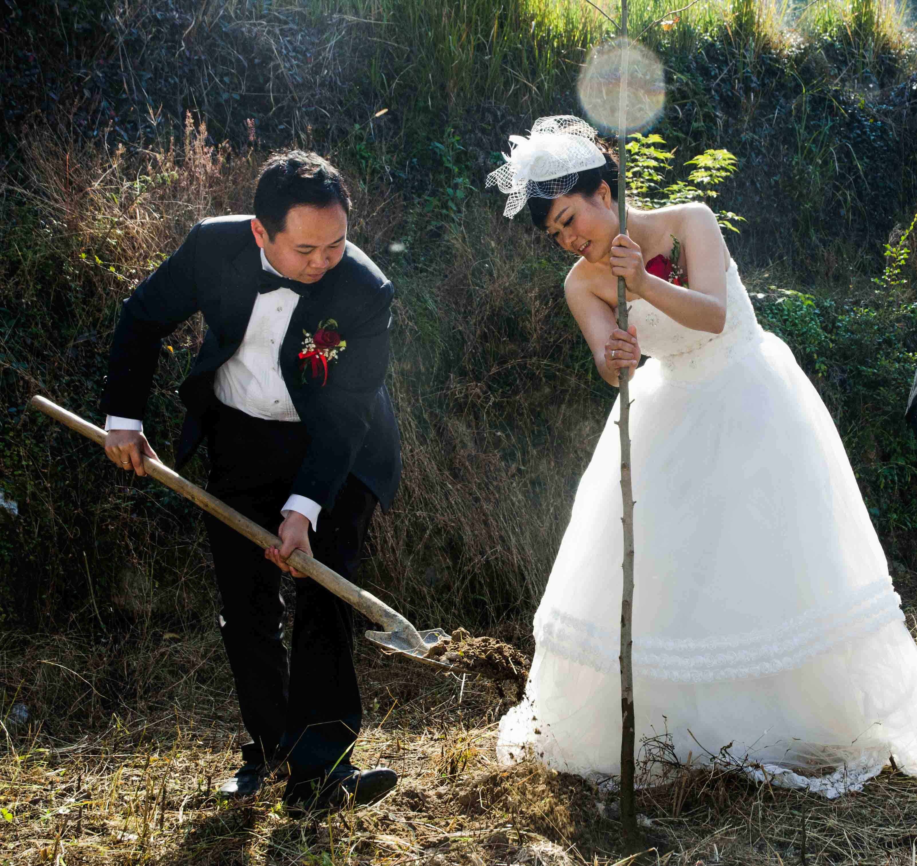 新郎新娘,在天臺南黃古道種下楓樹,見證愛情,種下希望.