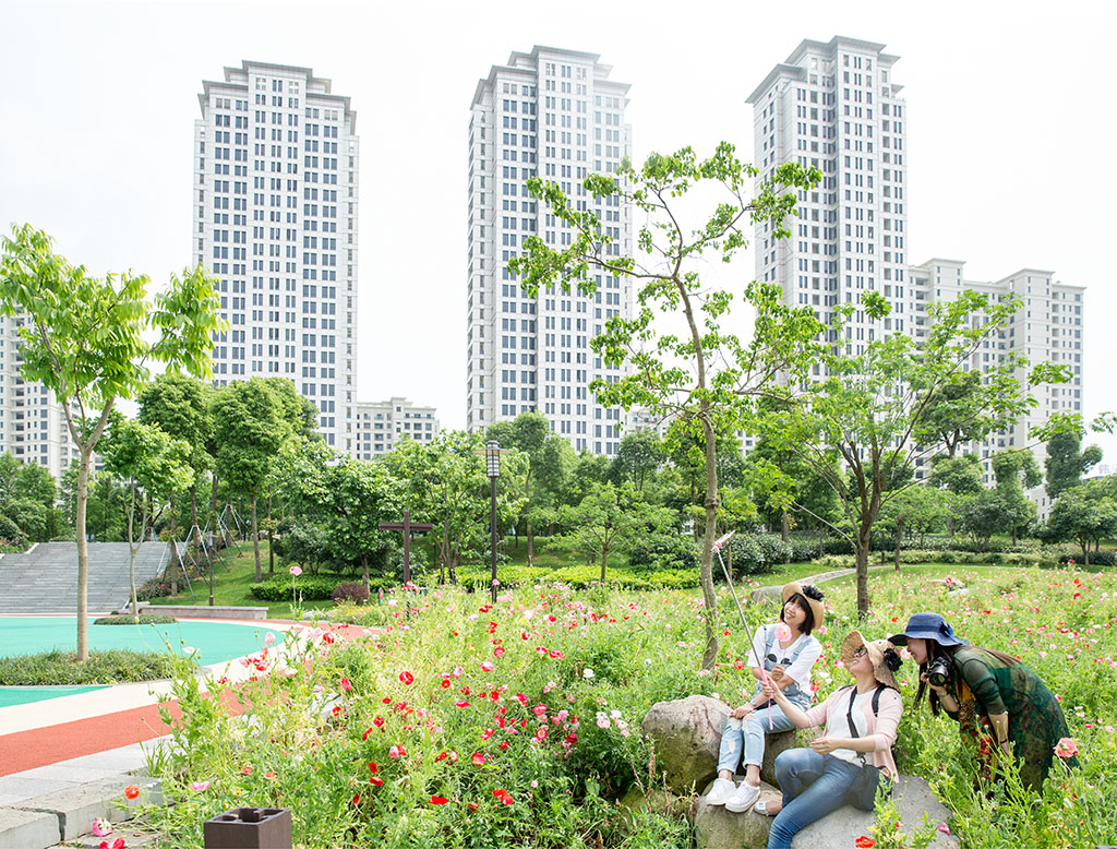 臨海偉星城江邊種植了一大片虞美人,引得市民爭相前來觀賞。