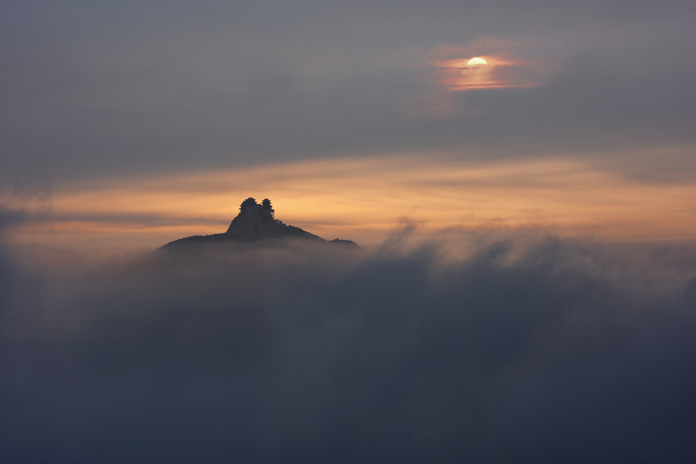 早晨起來在溫嶺樓旗尖創(chuàng)作時(shí),看到霞光染紅了云海,于是抓拍了這幅作品。
