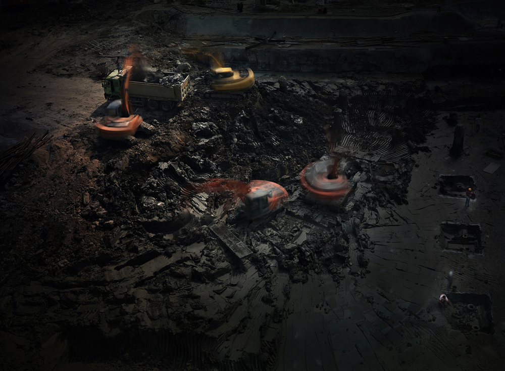 在溫嶺開發(fā)區(qū)一工地,挖土機轟隆作響,場面壯觀,于是用慢速度拍攝了這幅作品。