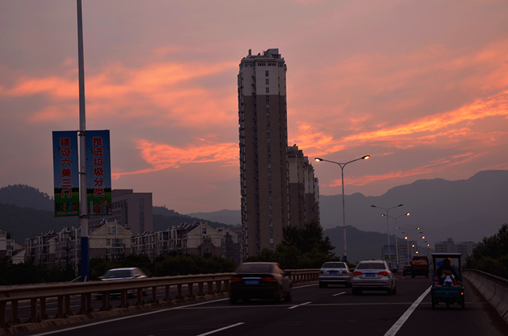 ——作品展示晚霞映照下的三門嶺楓公路美不勝收。作者:三門吳善能