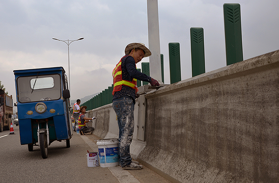 作品展示74省道三門過境段的公路裝點(diǎn)現(xiàn)場(chǎng)。作者:三門吳善能
