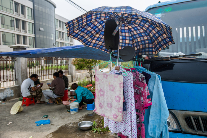 干活一天下來,麥客李尊成經(jīng)常累得吃不下飯。麥客們都被太陽烤得黝黑。“一干就是12個(gè)小時(shí),一刻都不消停。”李尊成說。“現(xiàn)在生意不好做了,每年收割工錢都在下降,去年江浙每畝麥田收割價(jià)在近百元,今年已降至60元。”