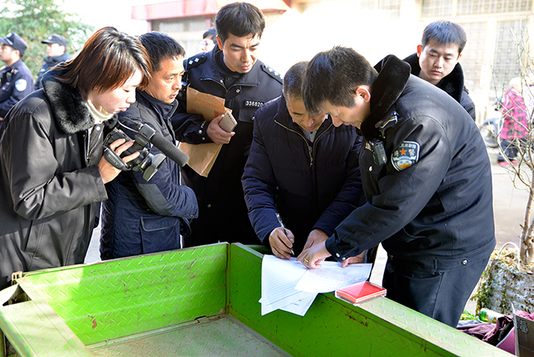 返回頂部>> 照片說明: 法警對(duì)被執(zhí)行對(duì)象進(jìn)行強(qiáng)制執(zhí)行時(shí),做到公開、公平、公正,在嚴(yán)格執(zhí)行法律賦予的神圣權(quán)威的同時(shí),時(shí)時(shí)處處體現(xiàn)人文關(guān)懷。本作品展現(xiàn)強(qiáng)制執(zhí)行現(xiàn)場(chǎng),讓村干部在被執(zhí)行的標(biāo)的物的清單上簽字見證。