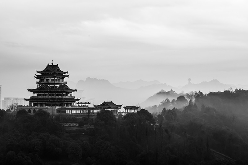 溫嶺的標(biāo)志建筑,霧與閣樓交織構(gòu)成的美麗景色